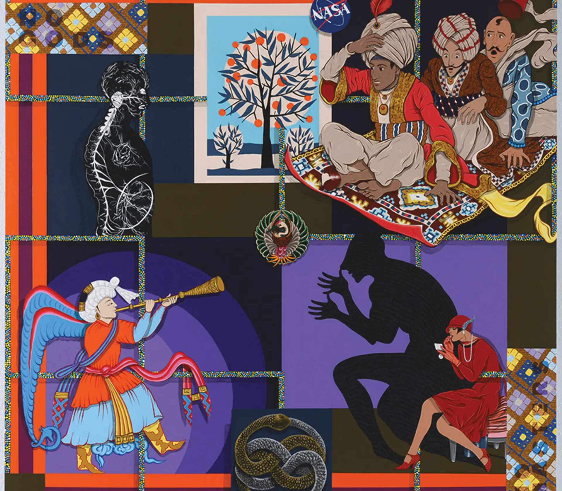 Amir H. Fallah’s No Gods No Masters (2020), which features in the Fowler Museum’s show; the Tehran-born artist draws on the diasporic Iranian American experience