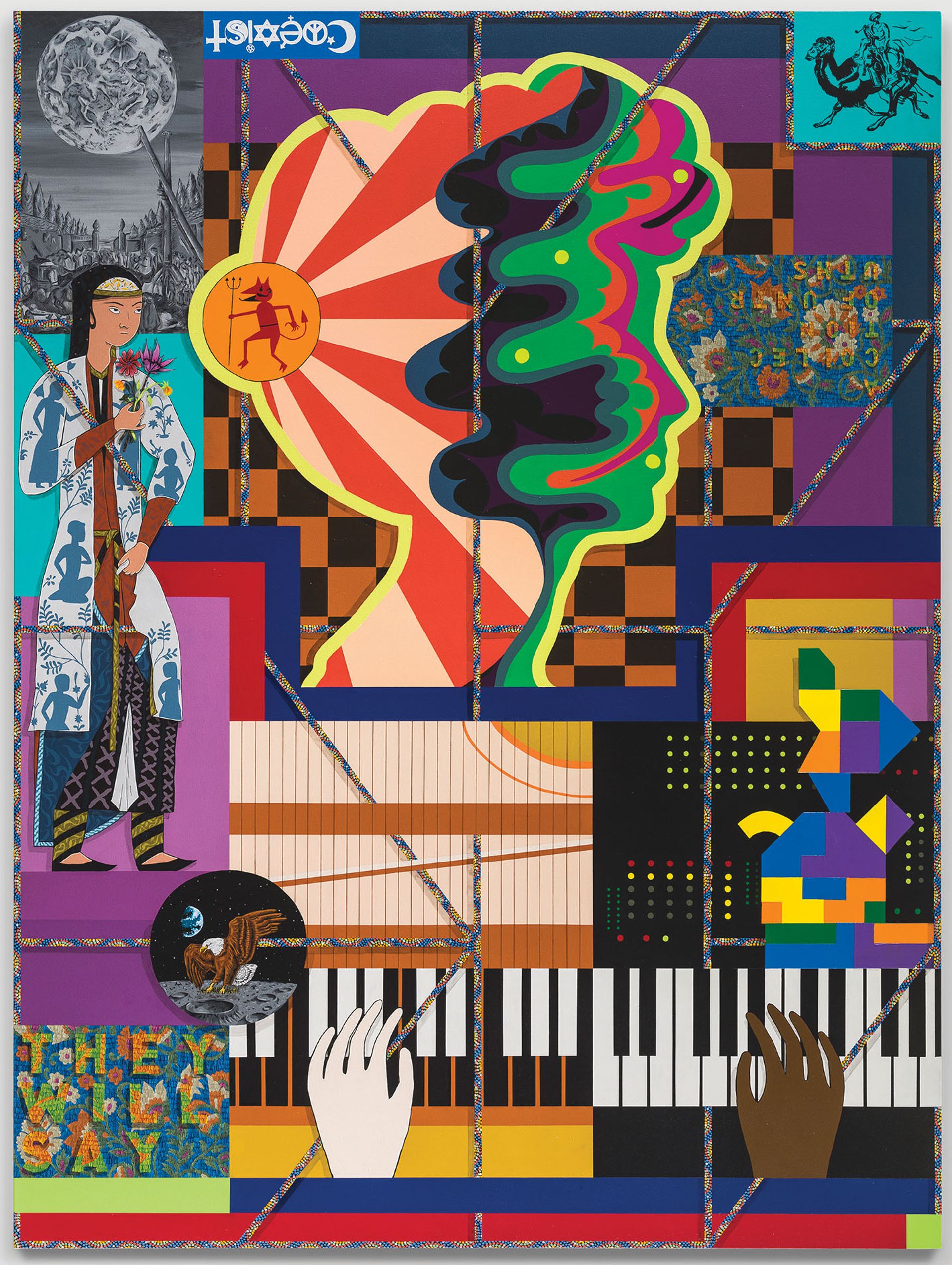 Los-Angeles based artist Amir H. Fallah has always taken the “more-is-more” approach to painting. “I really just try to cram everything in there that I can,” he says. It stands to reason, then, that his first institutional solo exhibition in the city, The Fallacy of Borders at the Fowler Museum at the University of California, Los Angeles, feels like a love letter to maximalism itself, a meditation on the electric noise of an increasingly interconnected age.