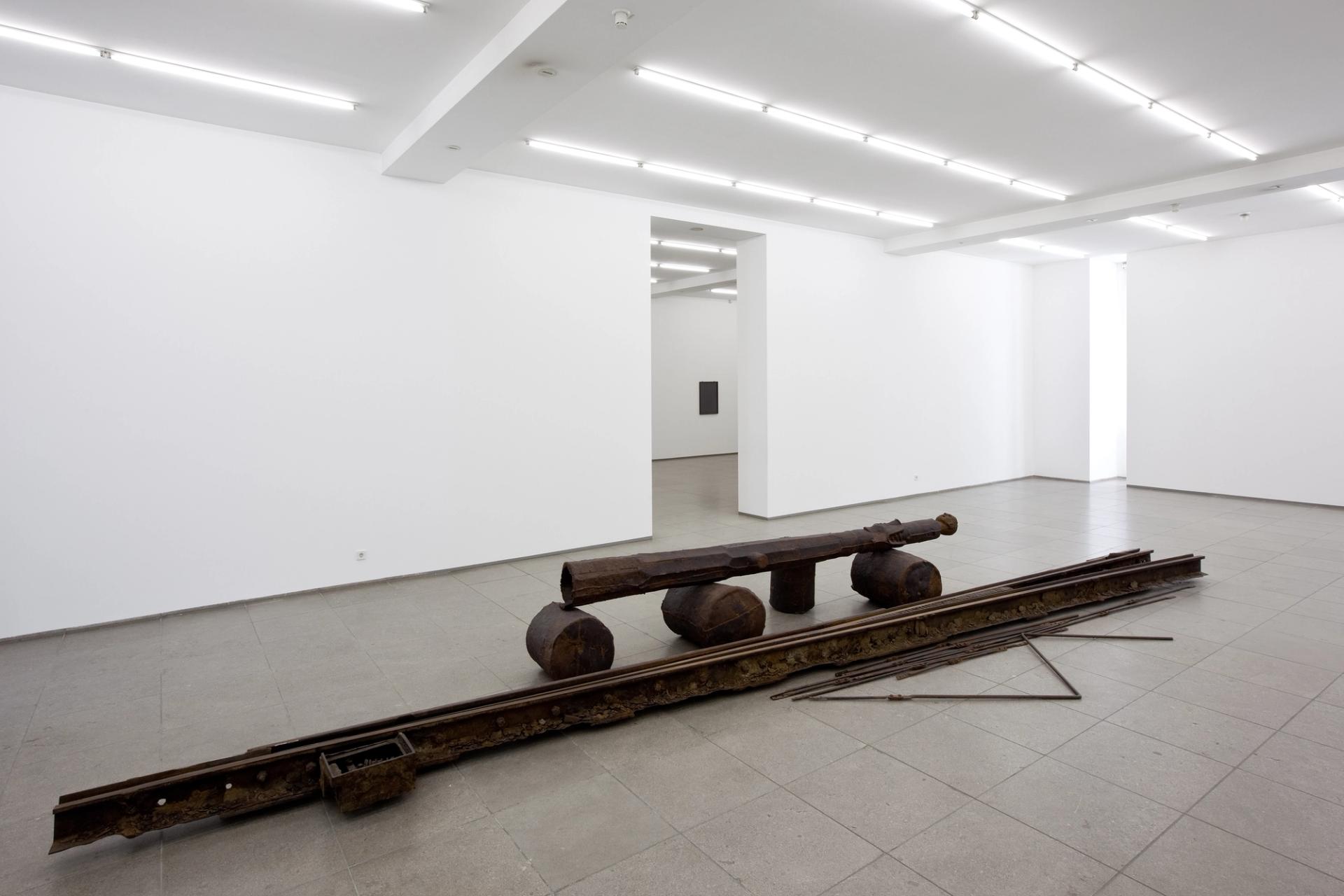 A deconstructed version of a tram stop recalled from Beuys's boyhood in Kleve, in western Germany, this work of installation art was originally created for the 1976 Venice Biennale. Topped off with an iron cast of a cannon barrel, the gathered ruin somehow manages to be mournful, maddened, and wistful.