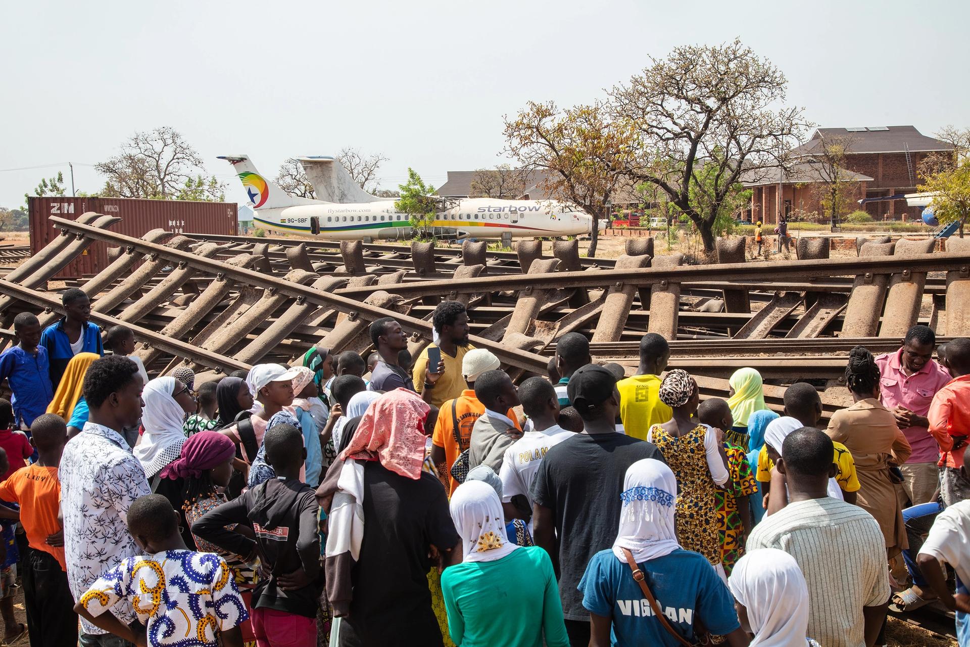 Train tracks arriving at Redclay. A converted Soviet airplane can been seen in the background Courtesy of Ibrahim Mahama, SCCA Tamale and Redclay