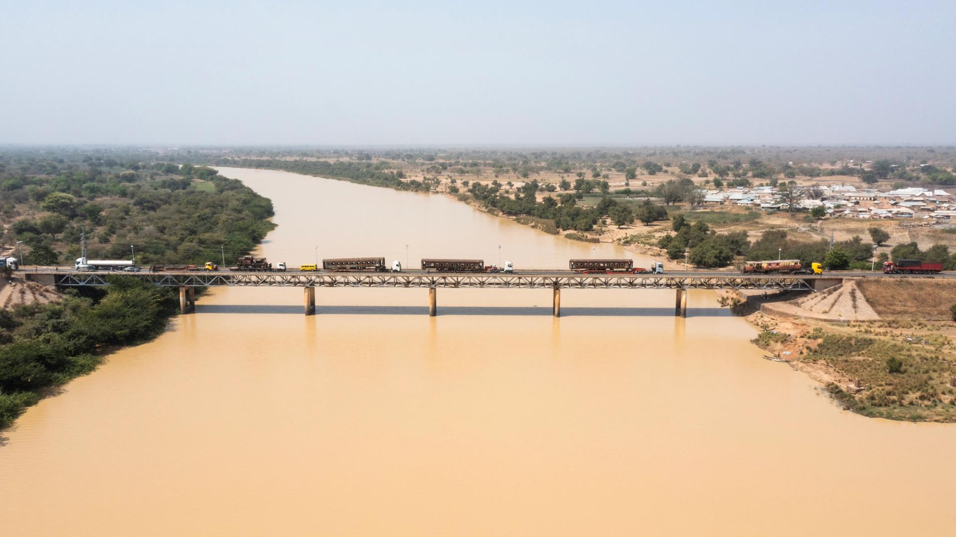 The trains crossing the Yapei river in the Northern Region of Ghana on their way to Ibrahim Mahama's studio in the city of Tamale Courtesy of Ibrahim Mahama, SCCA Tamale and Redclay