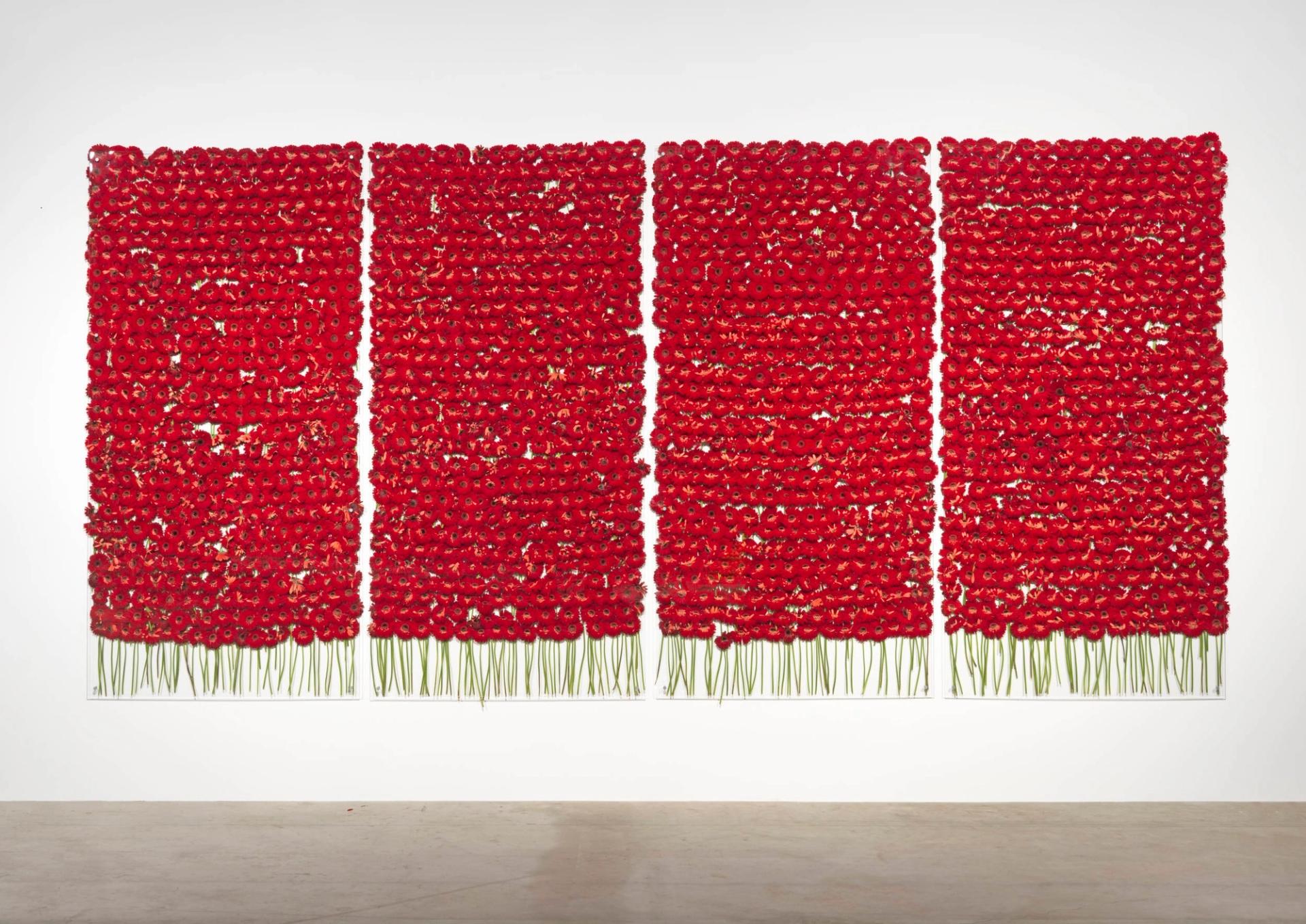 Other large-scale installations include Vong Phaophanit’s Neon Rice Field (1993)—consisting of seven tons of dry, white long-grain rice underlaid with six parallel tubes of red neon light—and Anya Gallaccio’s Preserve ‘beauty’ (1991-2003) comprising bright red flowers arranged in four adjacent rectangular compositions underneath large panes of clear glass.