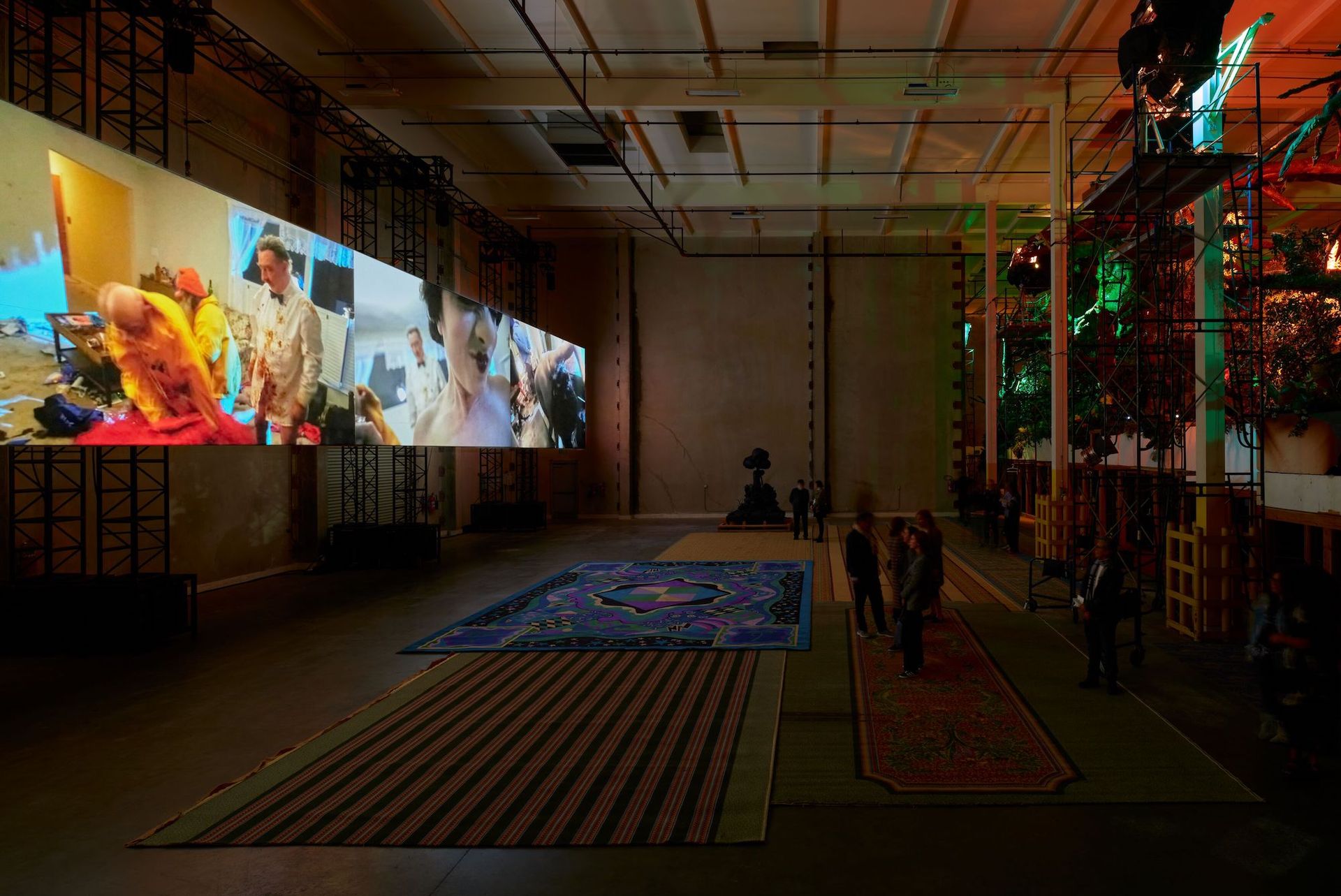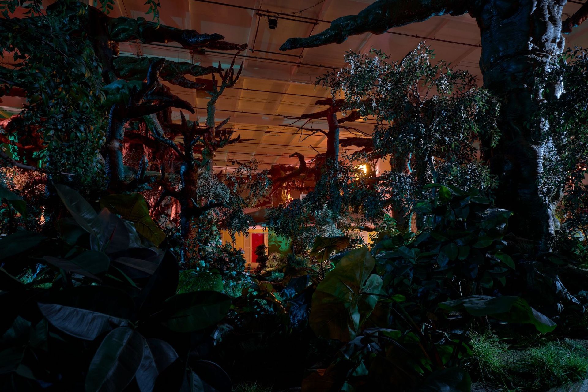 Emblematic of Paul McCarthy’s practice of subversive, abject spectacle, WS White Snow (2013) is a grotesque reinterpretation of a Disney fairytale. It comprises an 8,800 sq. ft artificial forest, a three-quarter-scale replica of the artist’s childhood home and a seven-hour multi-channel video of the most debauched house party imaginable.