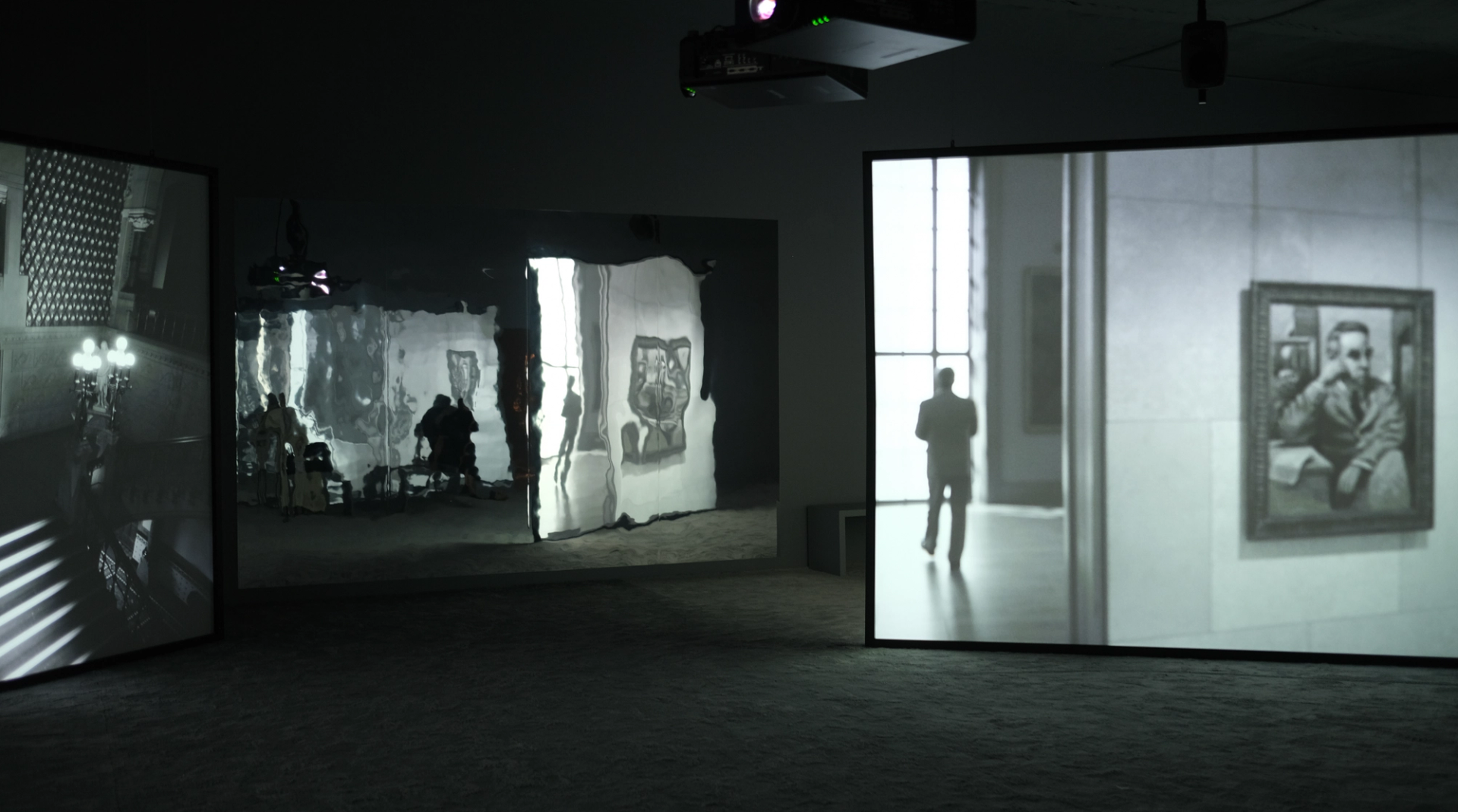 “Nothing is more galvanising than the sense of a culture past. When I grew up, I didn’t connect the makers of race with the makers of art… We are the shadowy figures looking for the door to a transgressive culture that will let us in,” the narrator proclaims in Julien's work, which, marked by a black-and-white mid-20th century aesthetic and a musical interlude performed on an empty stage, reads like theatre refracted on film.