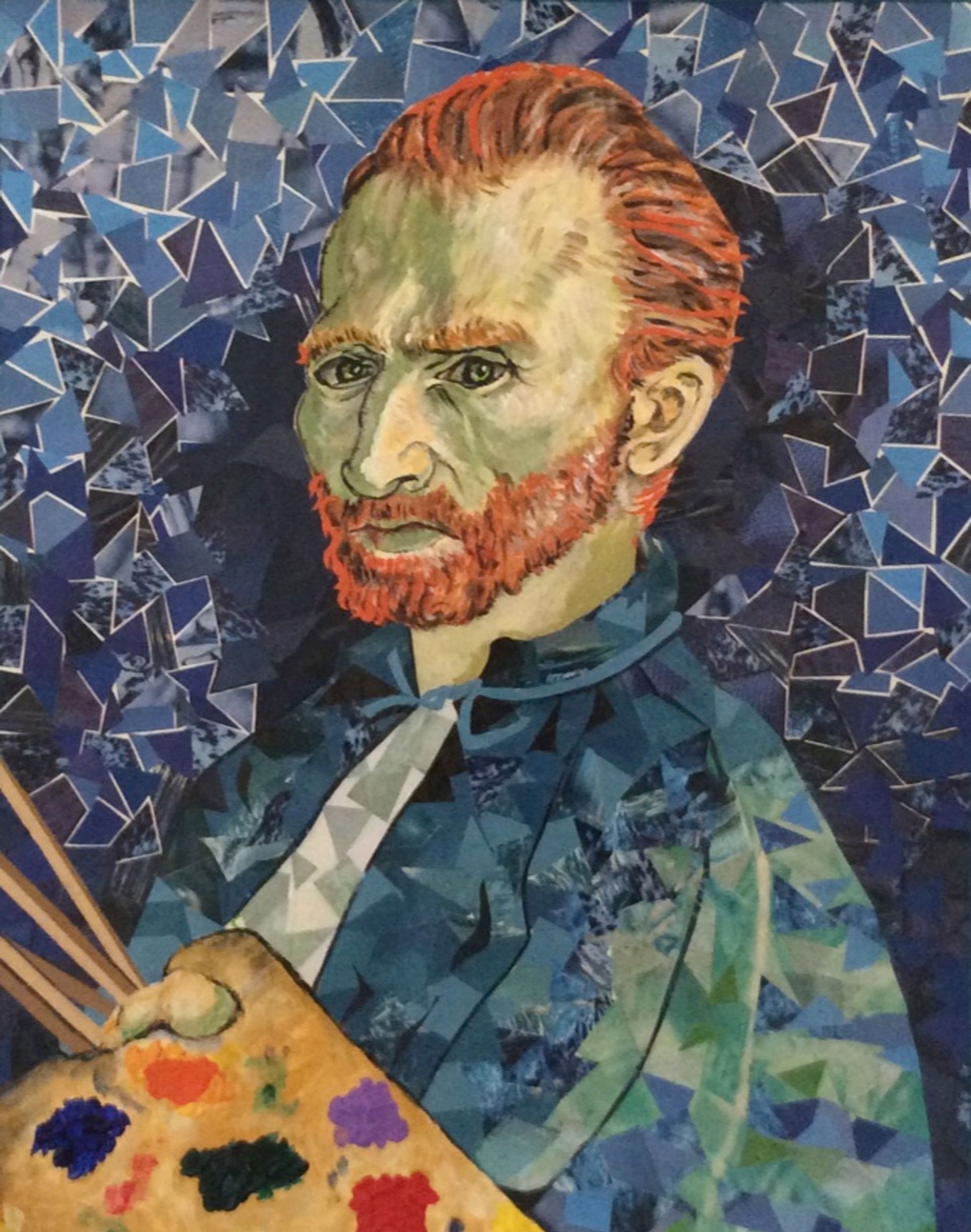 Having enjoyed working on her creation, she then decided to make another Van Gogh-inspired collage every month for the following year. Just before Christmas 2021 she shared what she called her “labour of love” with fellow residents, presenting the collages in a small exhibition in their communal living room—and celebrating with a seasonal drink.