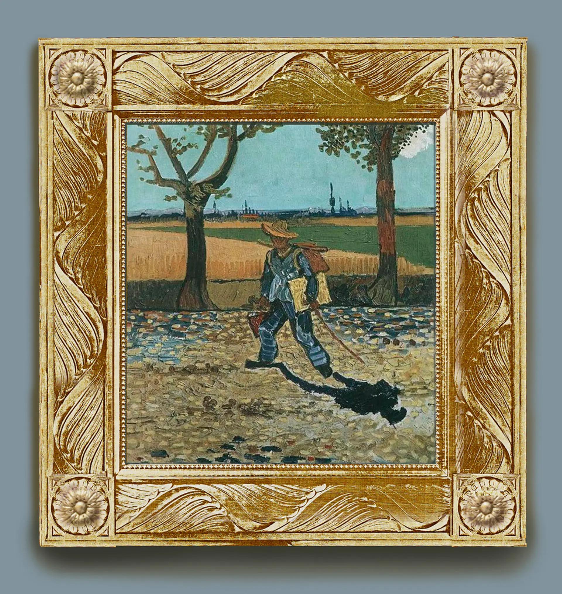 Reconstruction of the destroyed 1910s frame for Van Gogh’s The Artist on the Road to Tarascon (August 1888) at the Magdeburg museum