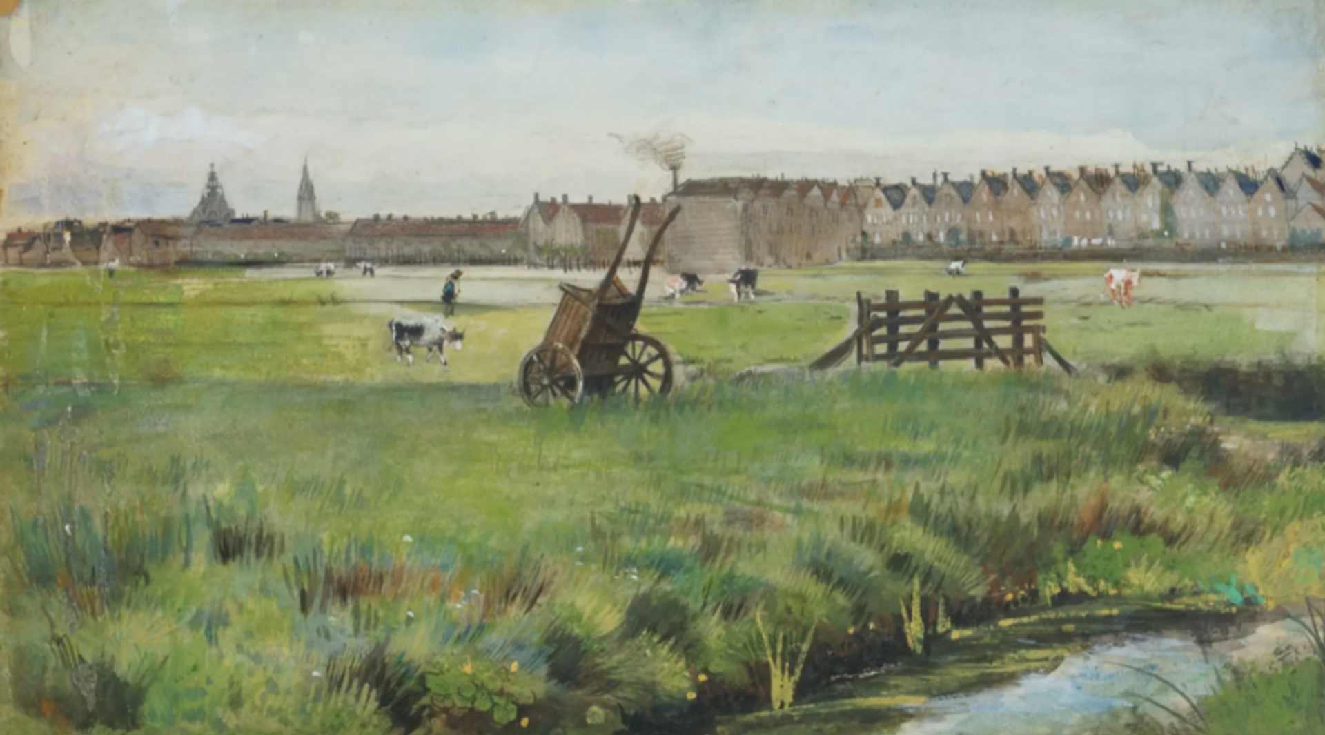 Van Gogh’s Meadow, in the Background the New Church and St Jacob’s Church (July 1882)
