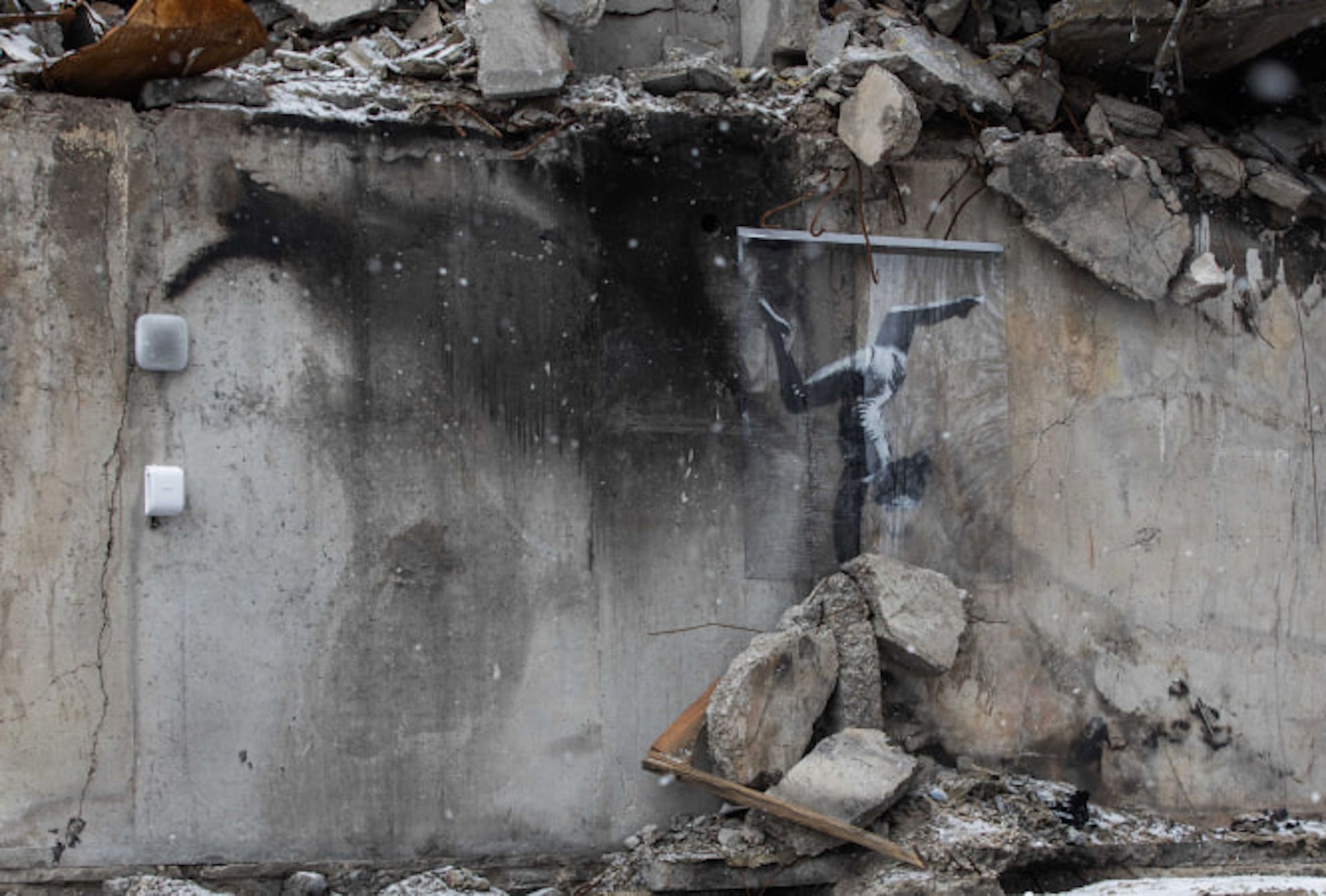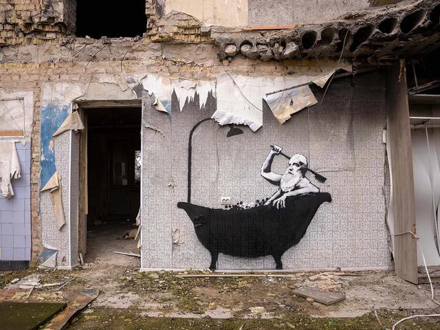 Oleh Torkunov, the deputy head of the Kyiv Regional Military Administration, says: “Banksy’s works have cultural and historical value for the country as a reminder that light will win over darkness. It is important to resist possible vandalism attempts that have already happened.”