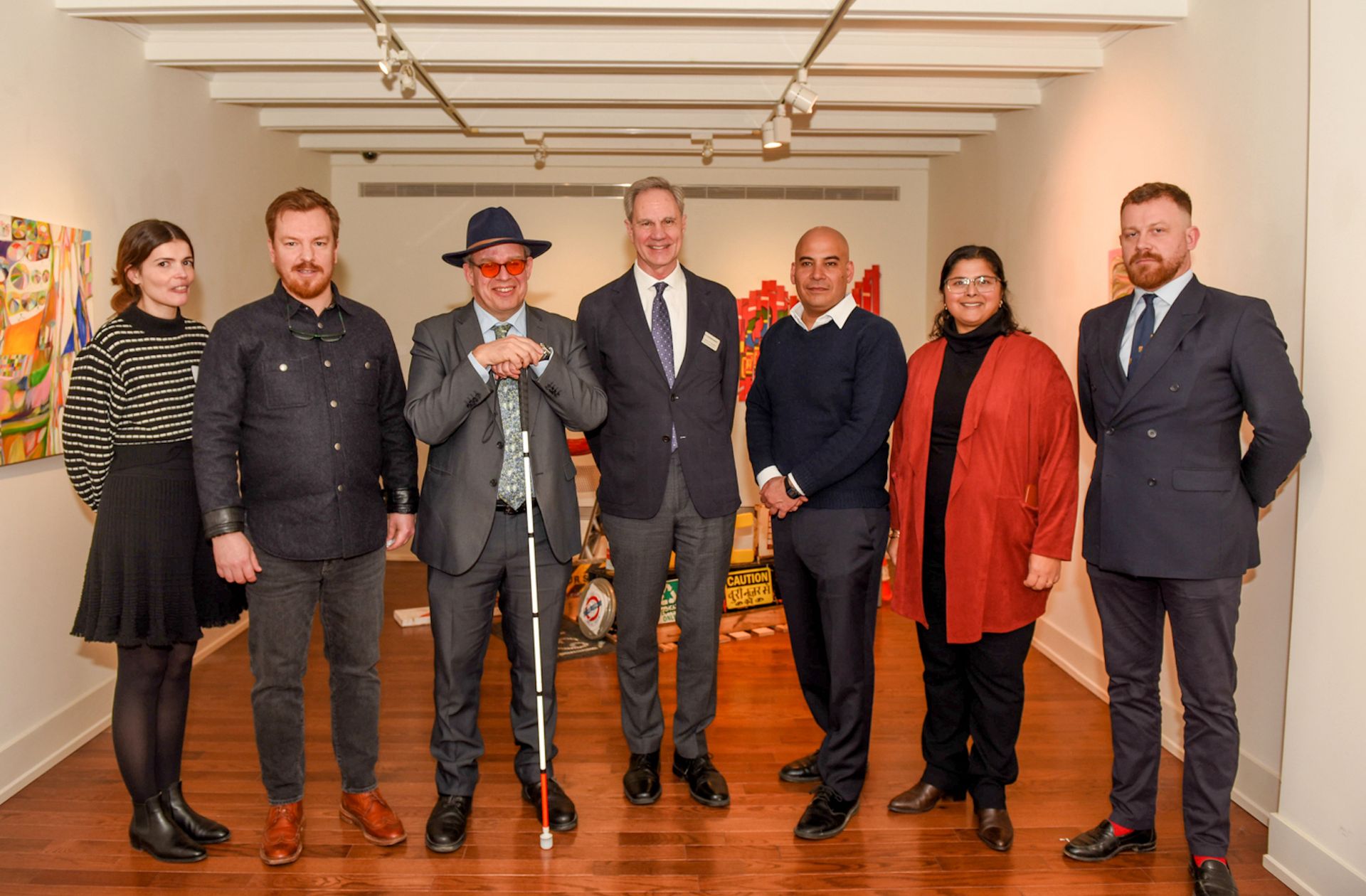 Jameel Arts & Health Lab launch event on 27 February at the National Arts Club with, from left, Cléa Daridan of Community Jameel, Stephen Stapleton of Culturerunners, Christopher Bailey of WHO, Jack Knott from NYU Steinhardt, Fady Jameel of Community Jameel, Nisha Sajnani of NYU Steinhardt and George Richards of Community Jameel. Photo by Ben Ouriel/New York University