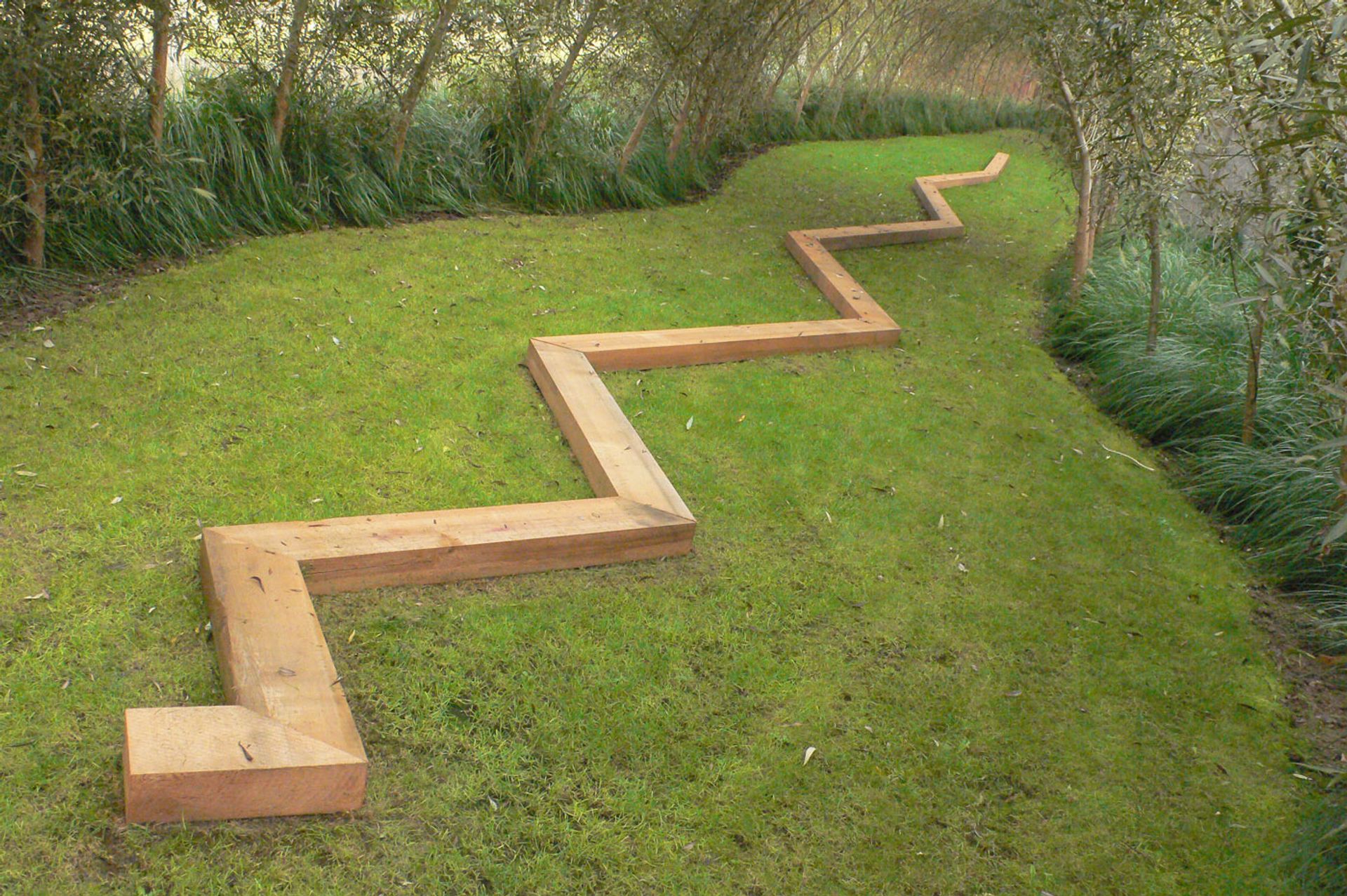 Such concerns placed Dilworth’s work at the heart of his generation’s understanding of what constructivism had to offer. It also enabled him to create some impressive large-scale wall reliefs and sculptures in wood and corten steel, not only indoors, but also outdoors, often in subtle site-sensitive ways. Meander (1991), both a linear progression and a wooden zig-zag horizontal construction, is a good example of this. It is a freestanding (or rather free-lying) sculpture, but also a hydrographic work that, placed on a river bed, echoed the movement of the river’s currents.
