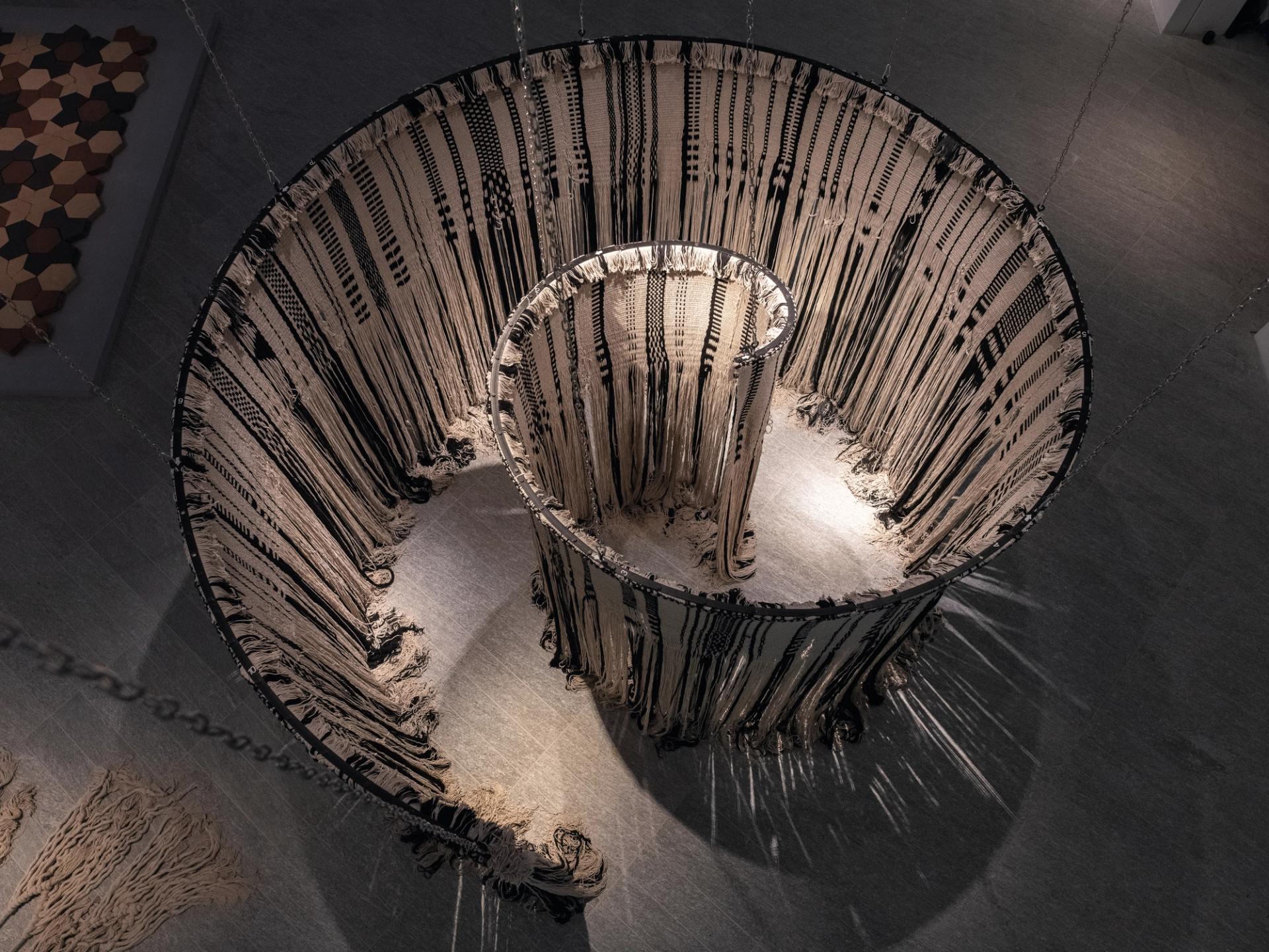 Sidelines is arranged in a spiral and visitors can walk into the centre, where they will find themselves surrounded by the thick, woven walls. AlDowayan hopes this will provide a moment of reflection where visitors can engage with the meaning of the work. “A lot of my works are like that. They find the moment when you move from aesthetics and beauty to the concept and its harshness.”