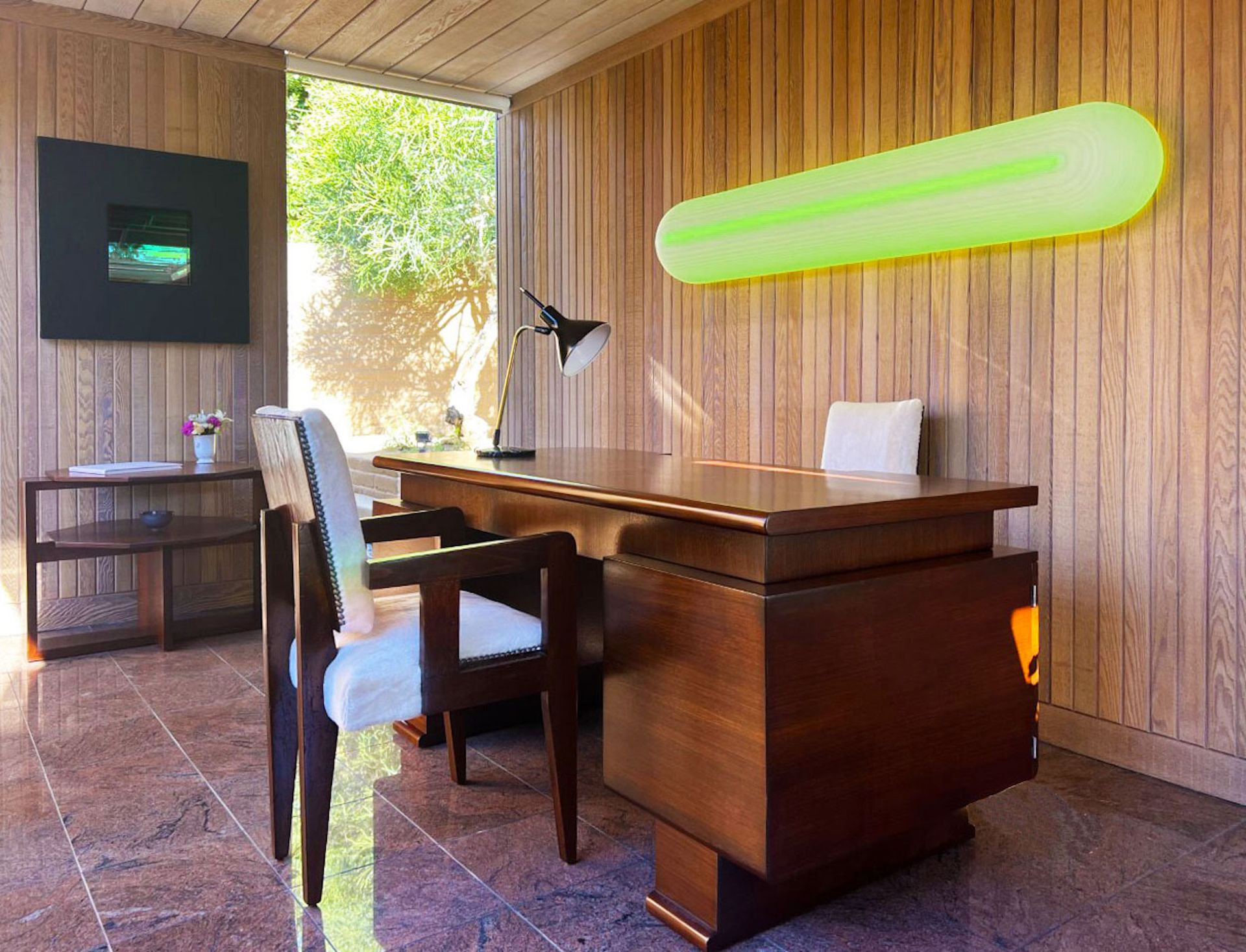 In leasing the house from the current owners—an architect couple who live in another house in Palm Springs—Blake took out all their furniture and moved in his inventory. The transition was done quickly so that the pop-up would be ready in time for both Modernism Week (16-26 February) and to the opening of the latest Desert X biennial (4 March-7 May).