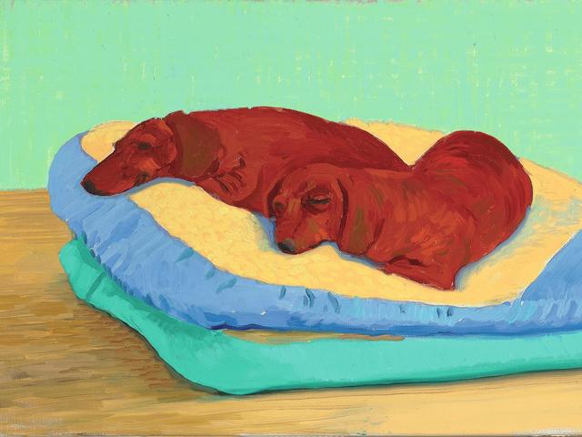 The earliest work is a Roman marble sculpture of two greyhounds by an unknown artist, on loan from the British Museum.There are also more contemporary pieces, like Lucian Freud’s 1988 painting of his whippet Pluto, and several David Hockney paintings of Stanley and Boodgie, his pet dachshunds. “They’re so familiar to everyone,” Collins says. “You can imagine being at home and seeing your dogs sleeping just in the way Hockney has captured his on canvas.”