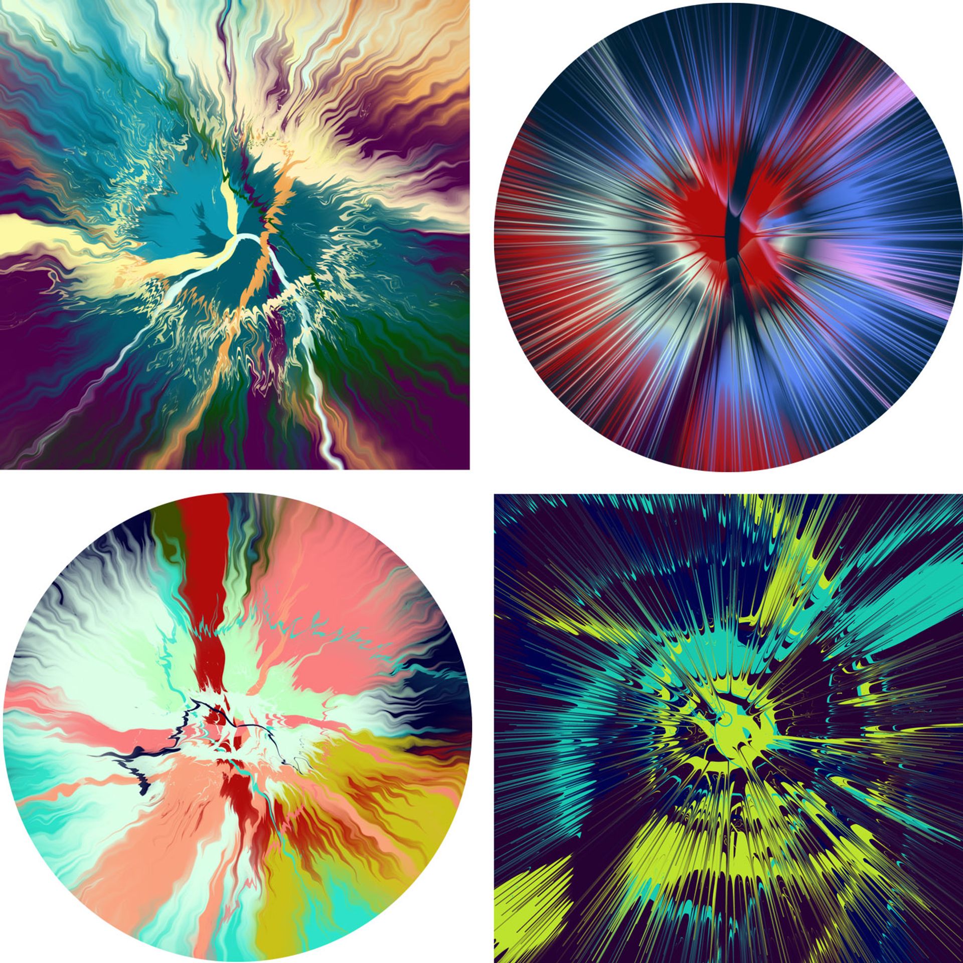 Four examples of The Beautiful Paintings NFTs, Damien Hirst, 2023 Photographed by Prudence Cuming Associates Ltd