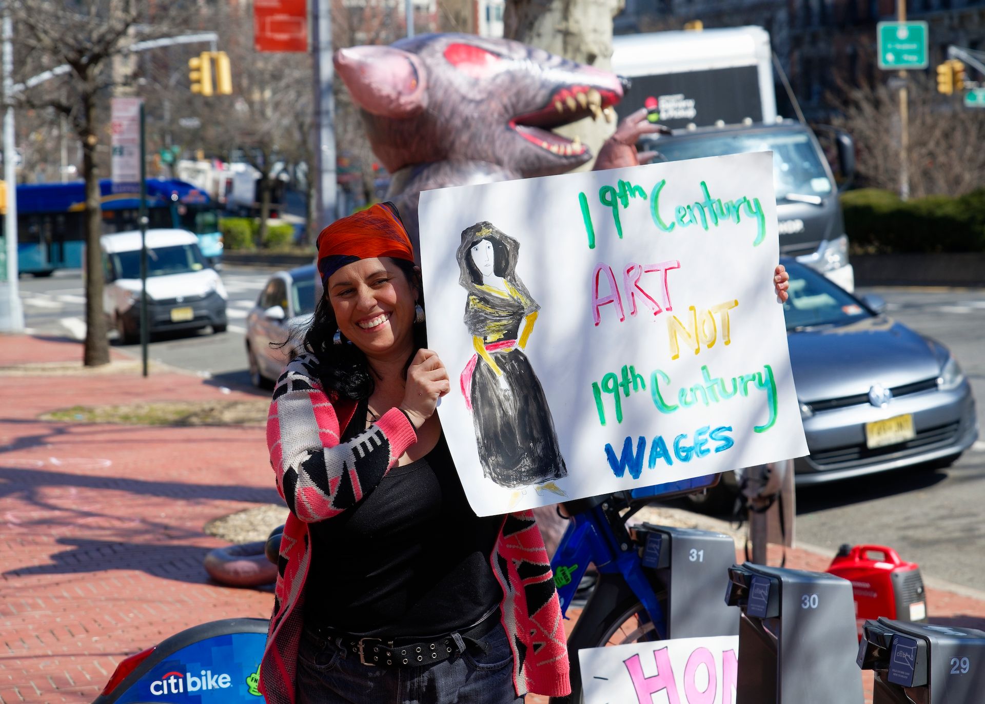 An employee of the Hispanic Society Museum & Library on the picket line Courtesy UAW Local 2110