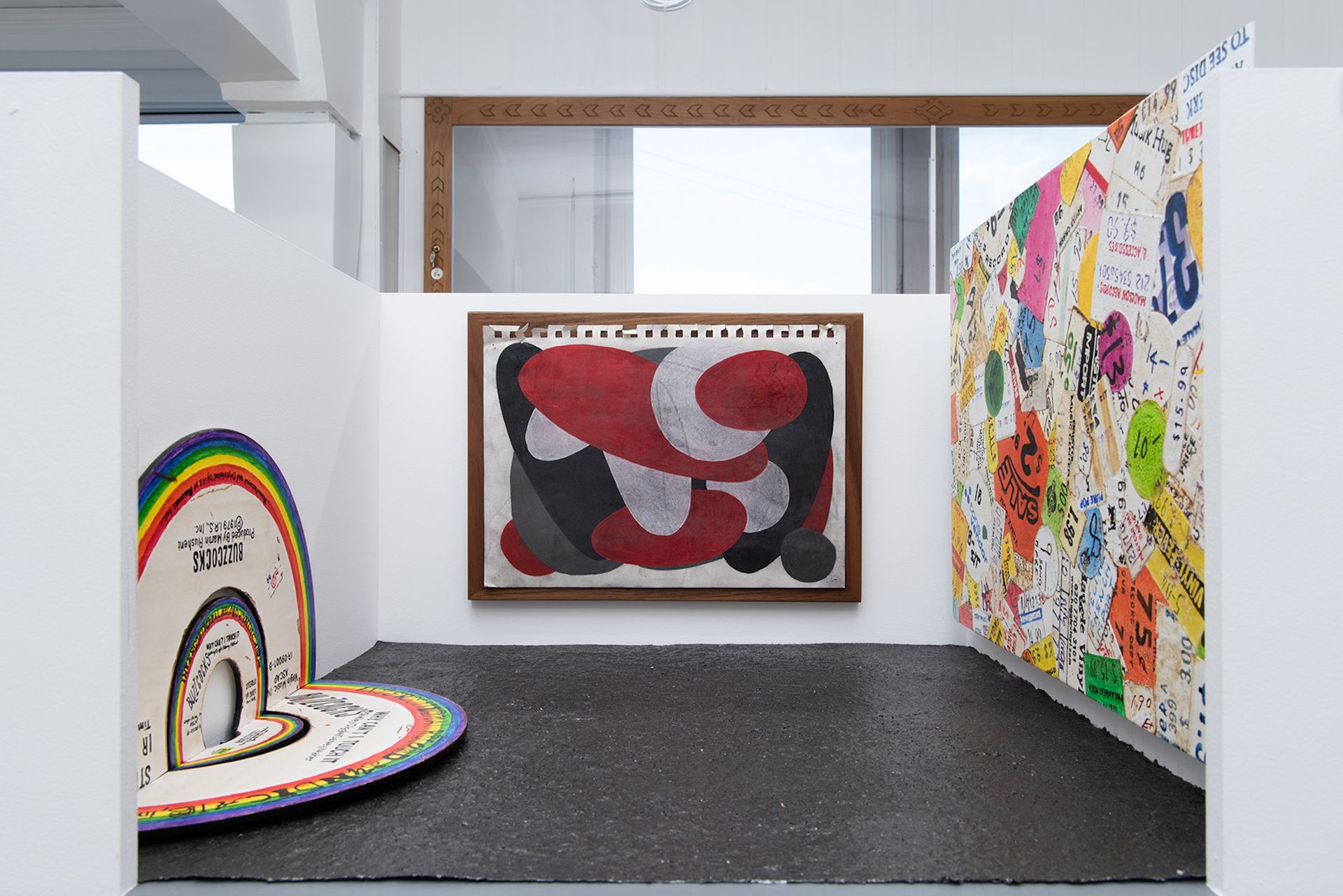 The Blum & Poe stand at Barely Fair 2022 featured works by Tony Lewis and Dave Mueller. Roland Miller