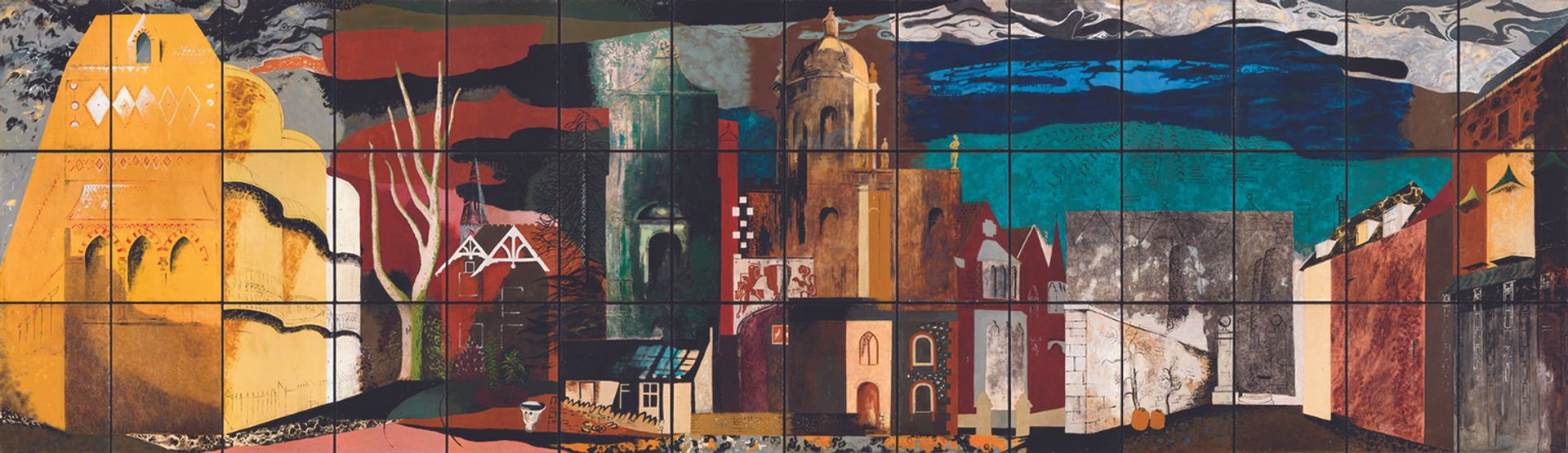 In addition, the Rothschild Foundation has recently bought the monumental John Piper mural The Englishman’s Home (1951). This had also been commissioned for the Festival of Britain, for the Homes and Gardens pavilion, where it was displayed on the exterior. Painted on 42 panels, The Englishman’s Home is 51 feet long and 16 feet high. Among the buildings it depicts are Brighton’s Regency Square, the dome of Castle Howard, near York, and the Epsom villa of the artist’s mother.
