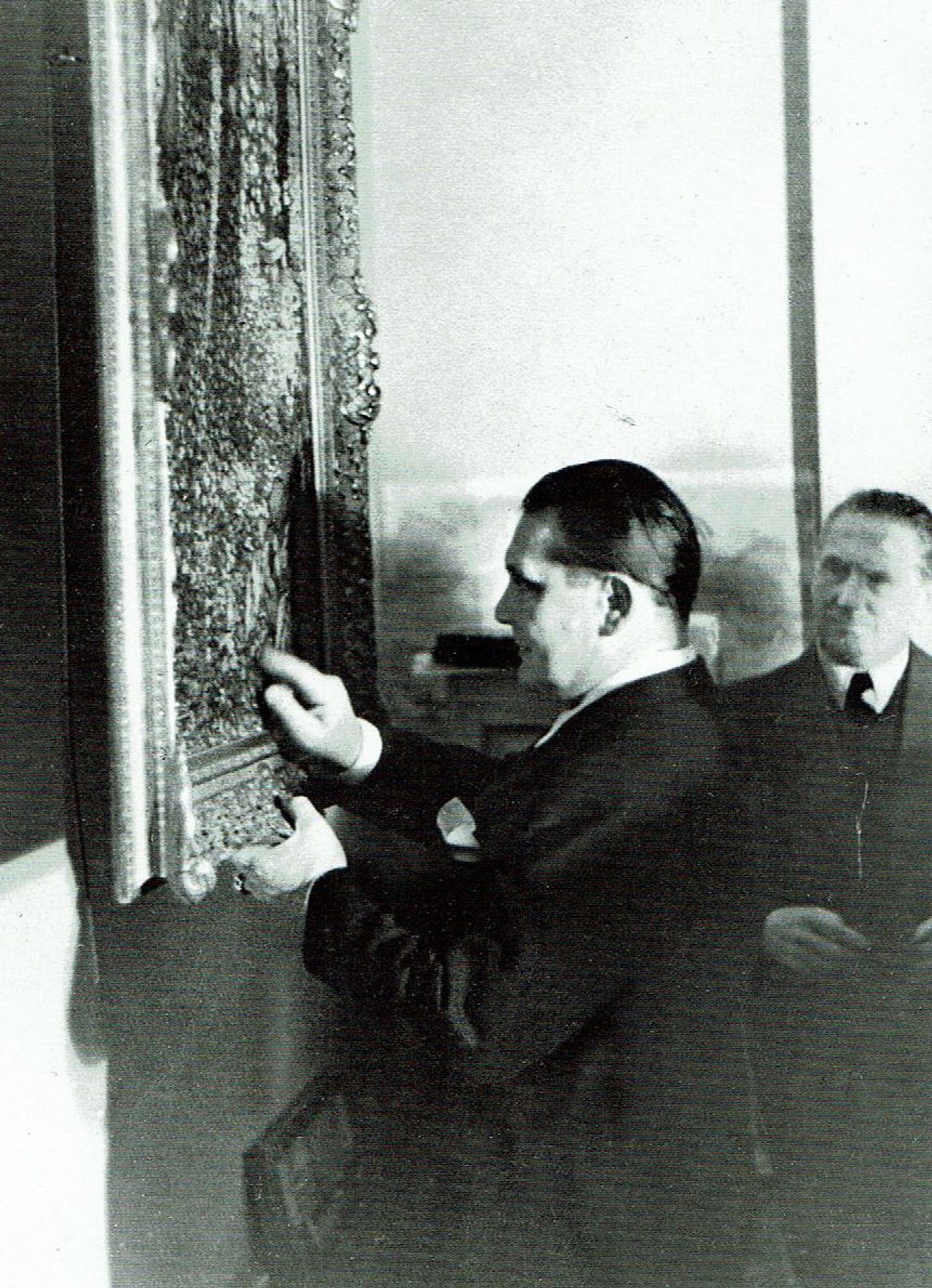 Nazi deputy leader Hermann Göring inspecting another looted Van Gogh in Paris,Trees with Ivy (May 1889), which belonged to another member of the de Rothschild family