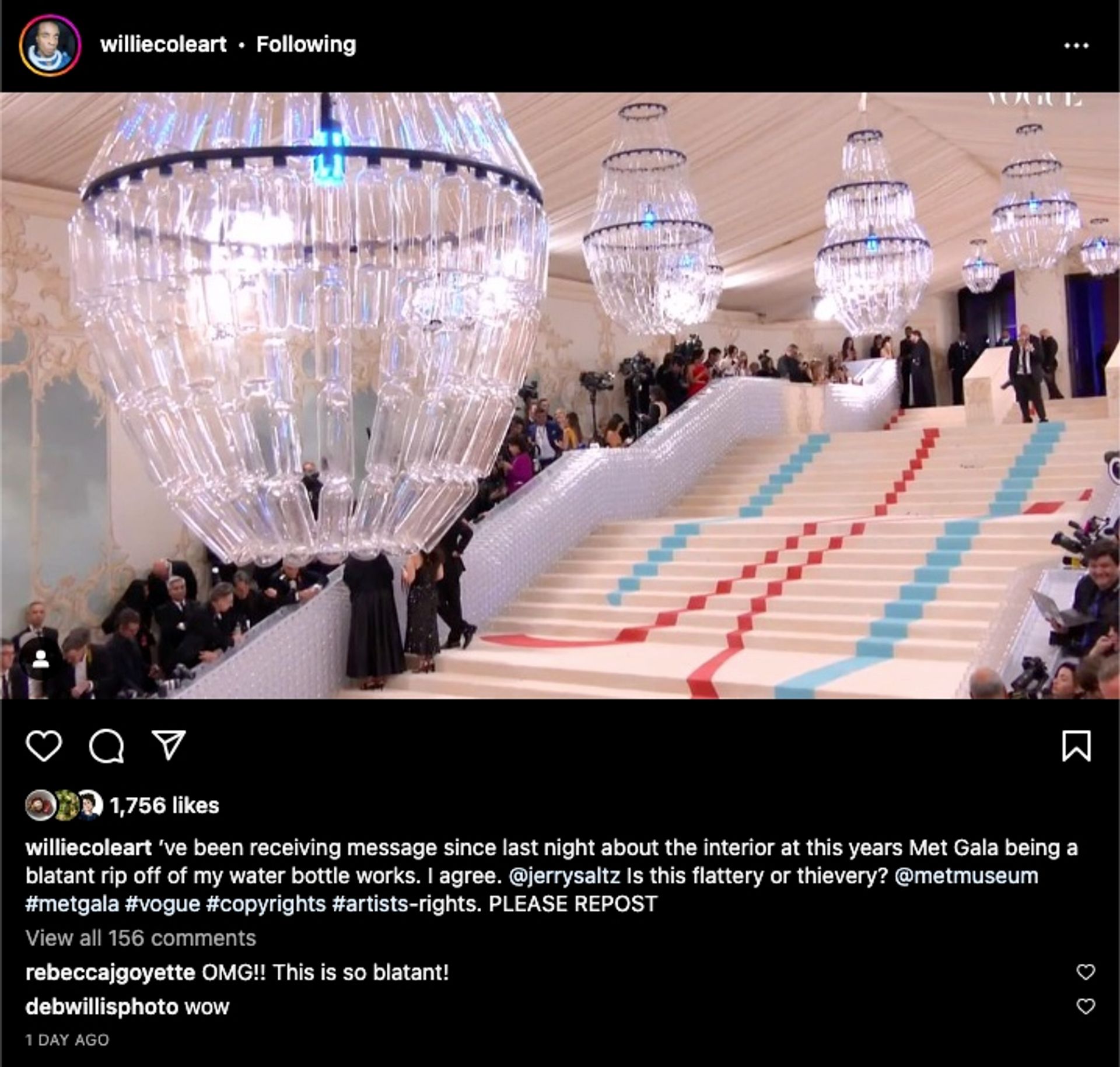 A post by artist Willie Cole on Instagram claiming the chandeliers featured at the 2023 Met Gala were unauthorised copies of his sculptures Screenshot via Instagram