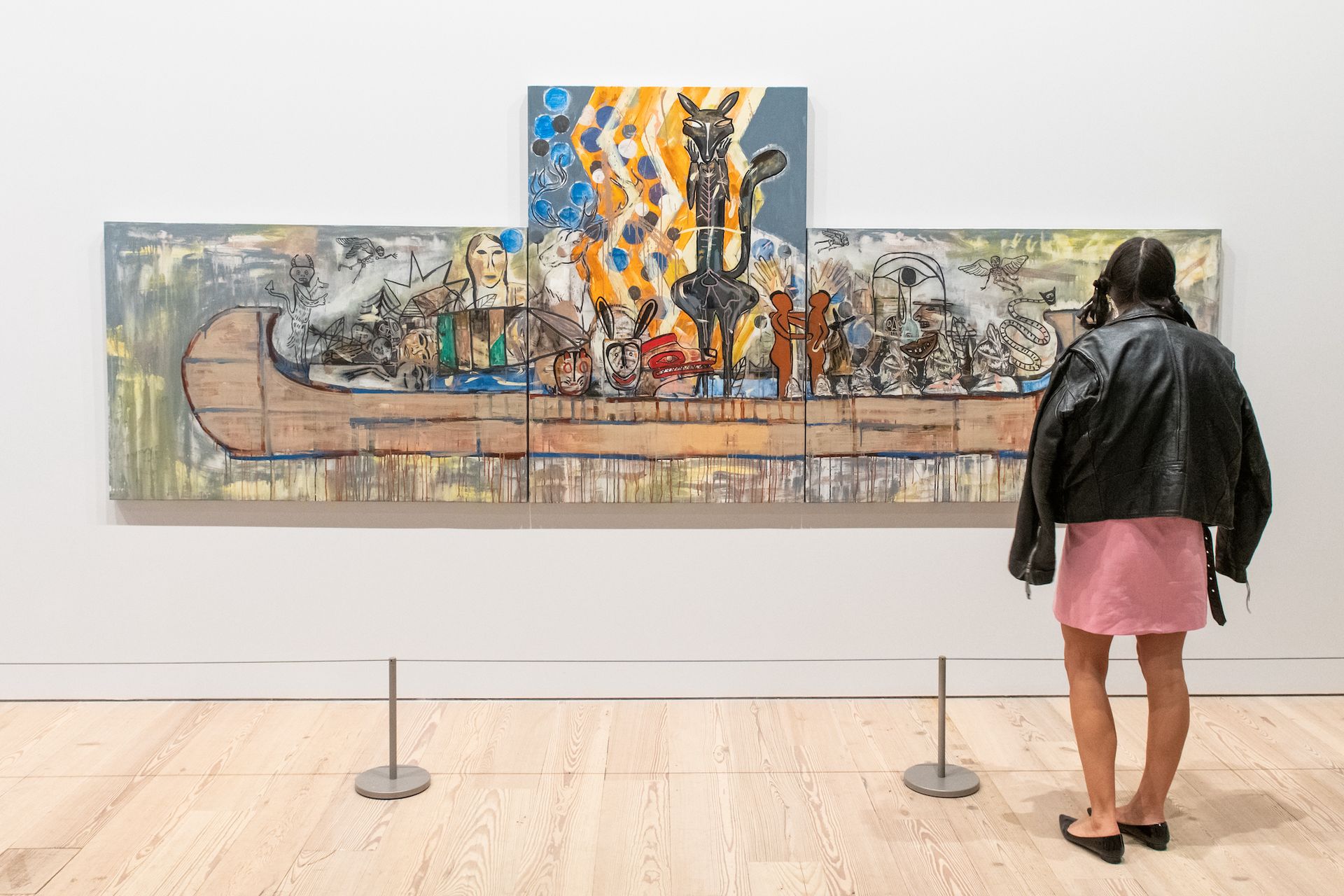 Jaune Quick‑to‑See Smith, Trade Canoe: Forty Days and Forty Nights, 2015 Photograph by Matthew Carasella, courtesy Whitney Museum of American Art