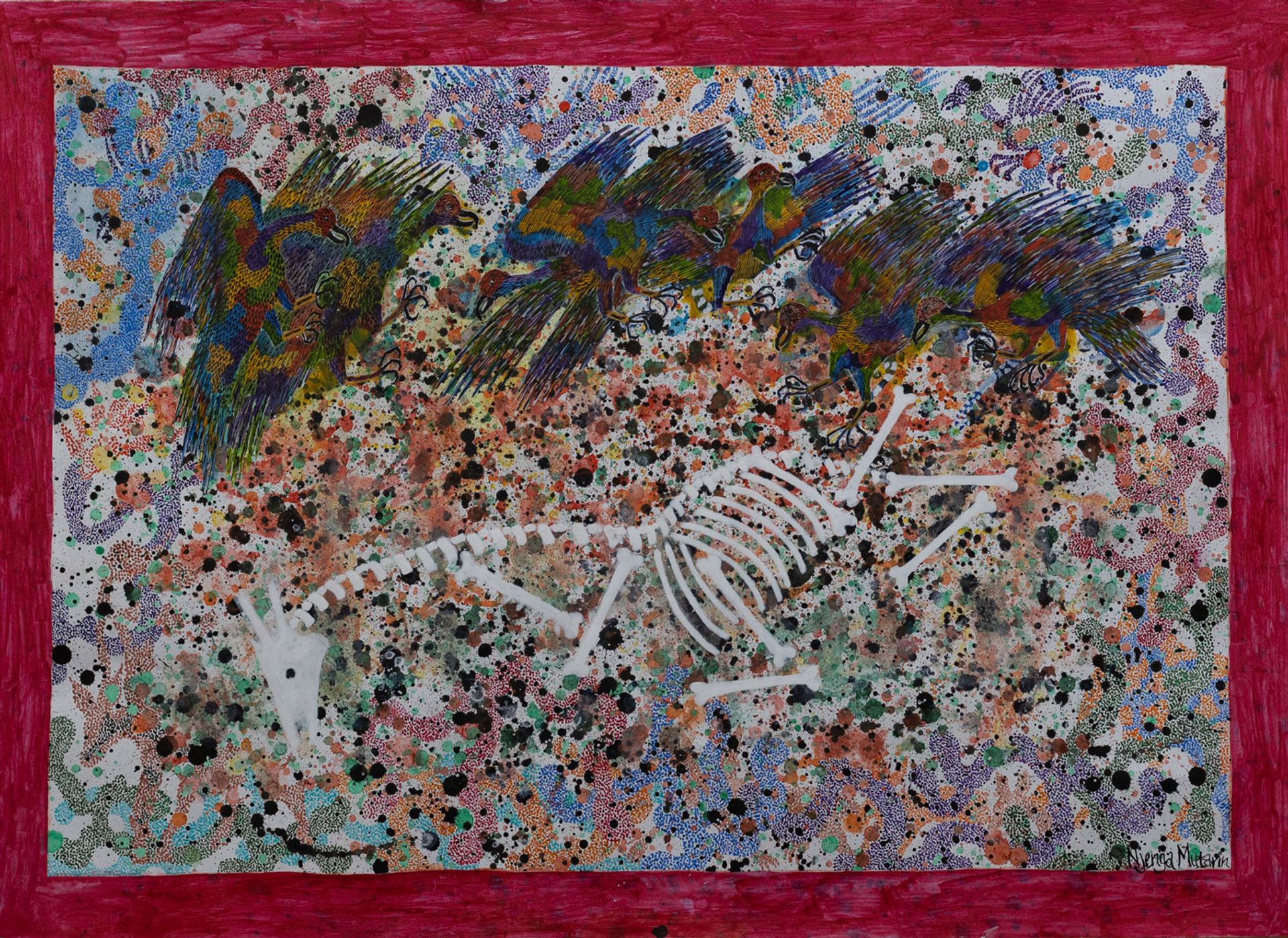 Nicholas Njenga, of Pamoja collective, Hungry Vultures, acrylic on paper Courtesy of the artist; photographed by Jed Kamuyu