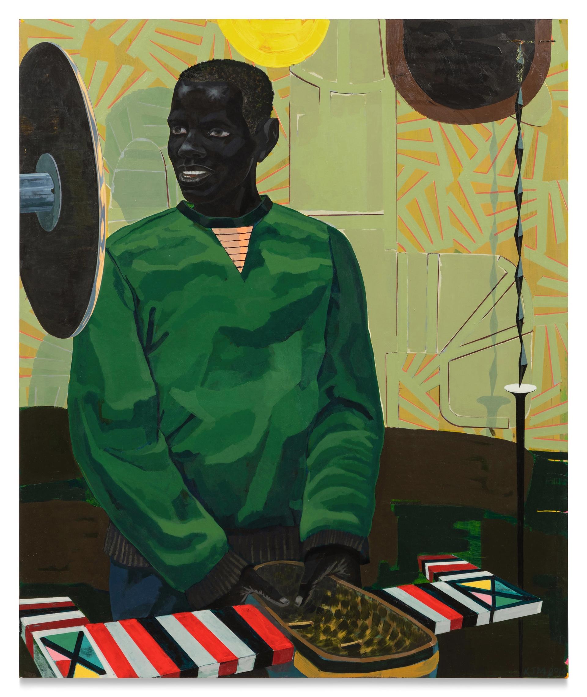 Next up, a brawny and bold play on Picasso’s Les Demoiselles d’ Avignon (1907)—Henry Taylor’s magnificent From Congo to the Capital, and black again (2007) unleashed a mini-bidding frenzy and sold to a telephone bidder for a record $2m ($2.4m with fees, est. $1m-$1.5m). The Los Angeles-based dealer Jeffrey Deitch was one of the underbidders.