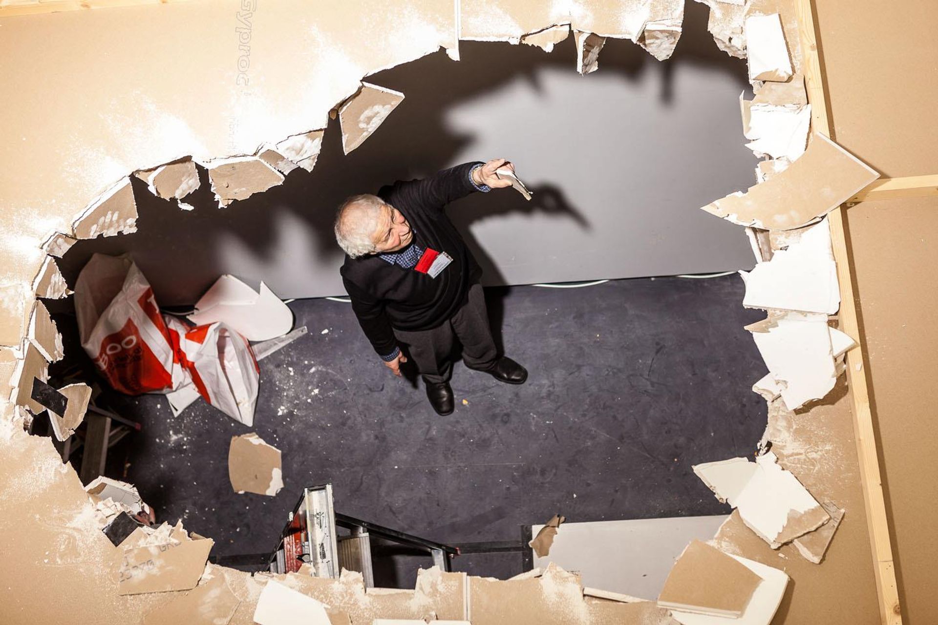 Kabakov is most famous for “total installations”, a genre that mined his biography and served in effect as the autobiography of every “little man” living under state oppression yet reaching for the stars. The Man Who Flew Into Space From His Apartment, created in his Moscow studio in 1985 and first shown publicly at the Ronald Feldman Fine Arts in New York in 1988, depicts a devastated room in a Soviet communal apartment, with all the accoutrements of life under Communism, including political posters. The man who lived there is gone, via a huge hole in the ceiling.