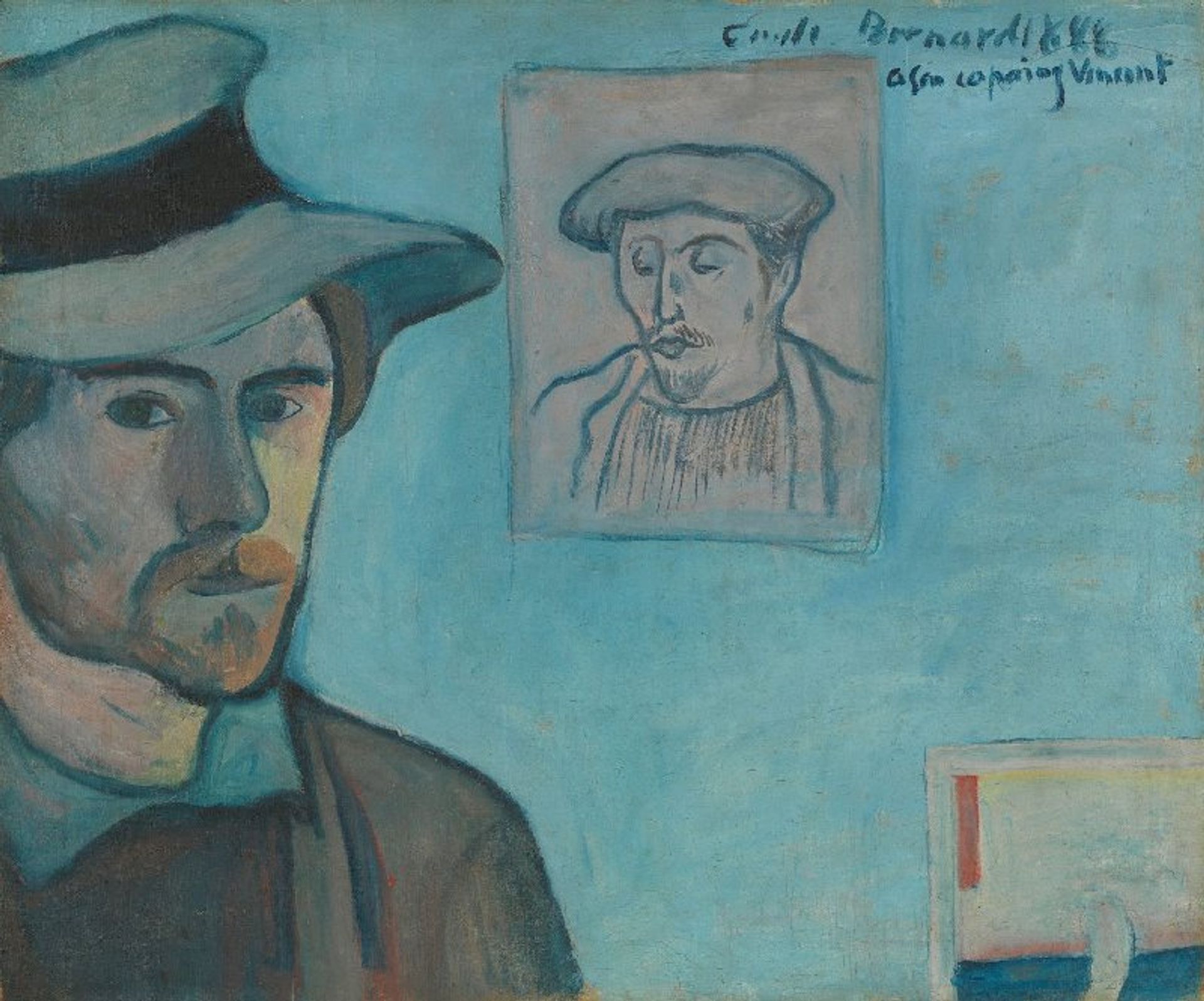 The pair in Pont-Aven took a slightly different approach, since young Bernard felt intimidated at the idea of portraying Gauguin, who was 20 years his senior. Instead of portraits of their colleague, they each produced self-portraits, but included small sketches of their colleague in the background.