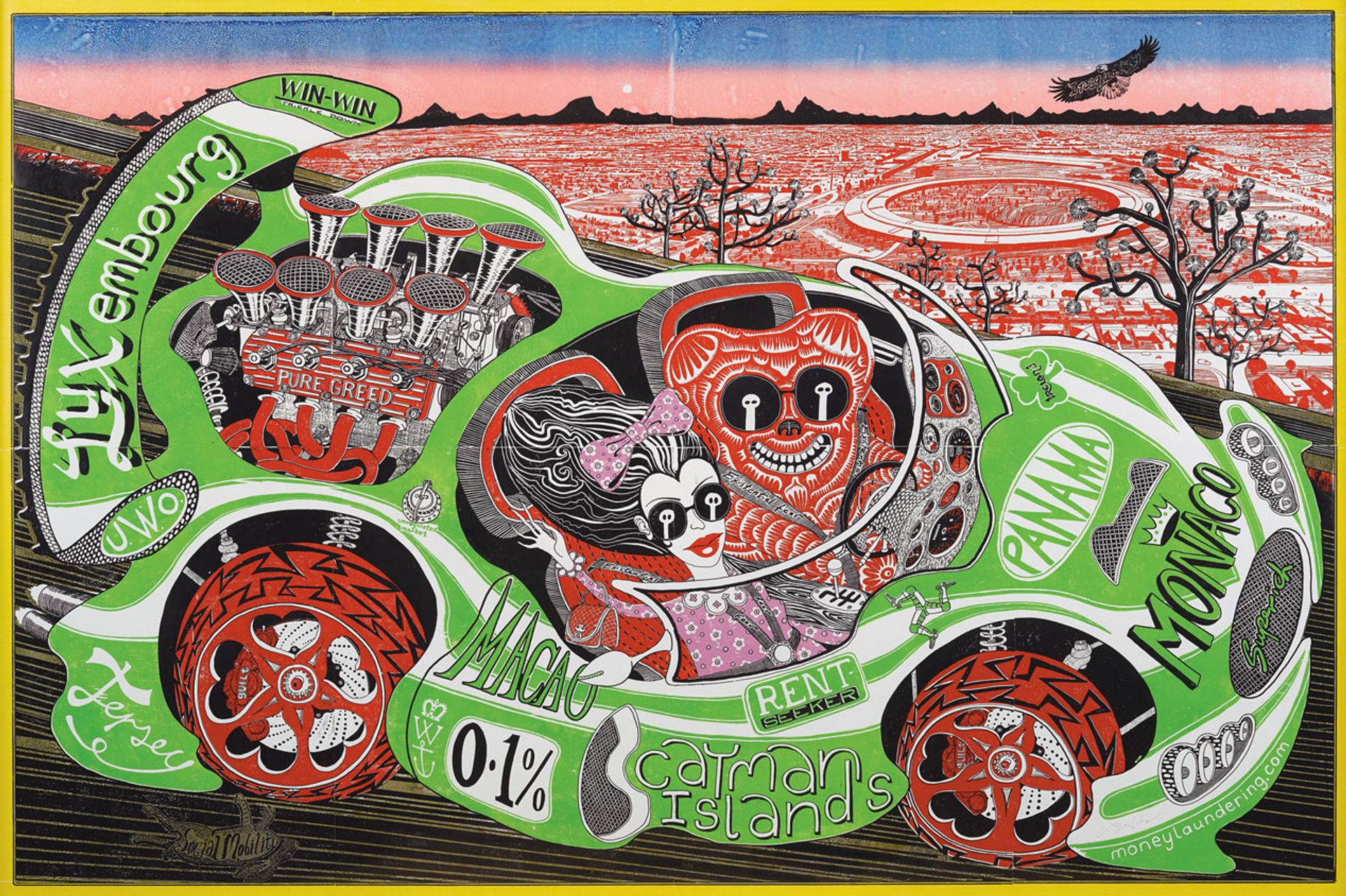 Grayson Perry's woodblock print Sponsored by You (2019) © Grayson Perry.; Courtesy the artist; Paragon. Contemporary Editions Ltd and Victoria Miro; Photo: Jack Hems