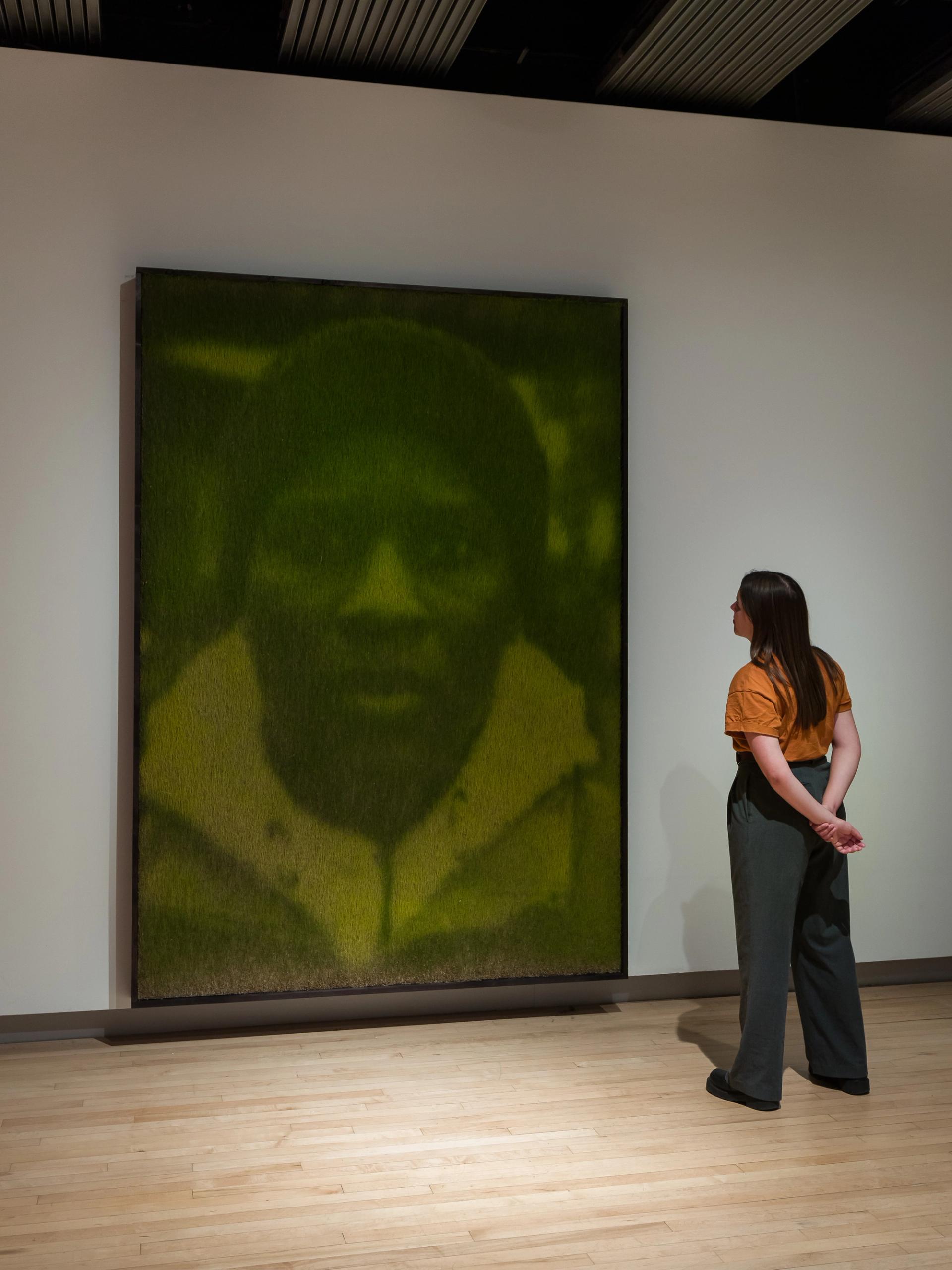 A more light-touch reminder of the power of plants is offered by the artist duo Heather Ackroyd & Dan Harvey who have been making their trademark photosynthesis photographs in living grass for more than three decades. Over the years these have often been used to spotlight important figures fighting for climate justice worldwide, and for Dear Earth the artists have made five new portraits of local London based activists. They are: Julian Lahai-Taylor of Grow Lewisham; Love Ssega , co-founder of LIVE & BREATHE; Destiny Boka-Batesa, one of the founders of the clean air campaign Choked Up; Paul Powlesland, a co-founder of Lawyers for Nature and River Roding Trust; and Helene Schulze of the London Freedom Seed Bank. Each of these individuals and their organisations correspond to the four cornerstone ‘commons’: soil, air, water and seed, that we all need – and need to share - in order to sustain life on Earth. While I would have liked more detailed information about each of these figures and how we can support their work ( a QR code by each label, perhaps?) these hauntingly elegiac images literally and figuratively root the work in the urgent – and active - specifics of the here and now.