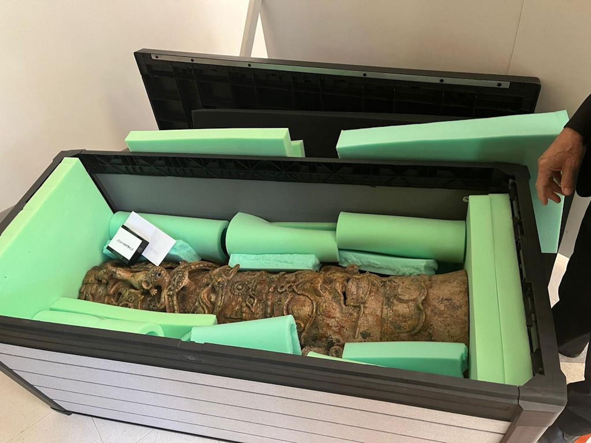 The recovered incense burner, packed for repatriation to Mexico Courtesy Consulate General of Mexico in Austin.