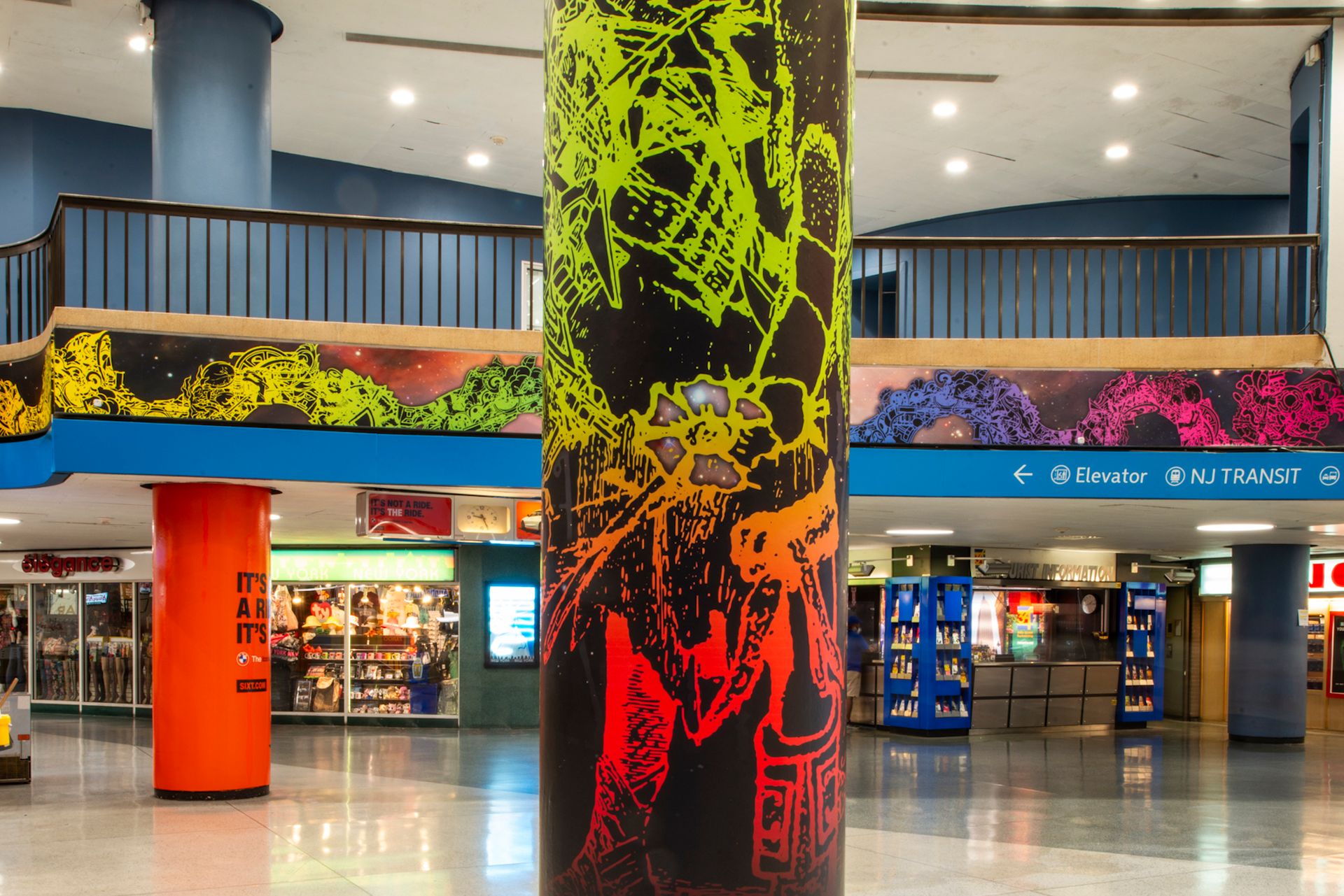 The two installations bring a dose of the cosmopolitan—and cosmic—to a space that many consider to be utterly lacking in character. They mark the Art at Amtrak programme’s fourth iteration at Penn Station and come just as the initiative is set to expand to Washington, DC’s Union Station. The first commission there, by DC-based artist and educator Tim Doud, will debut in September and remain on view until winter 2024.