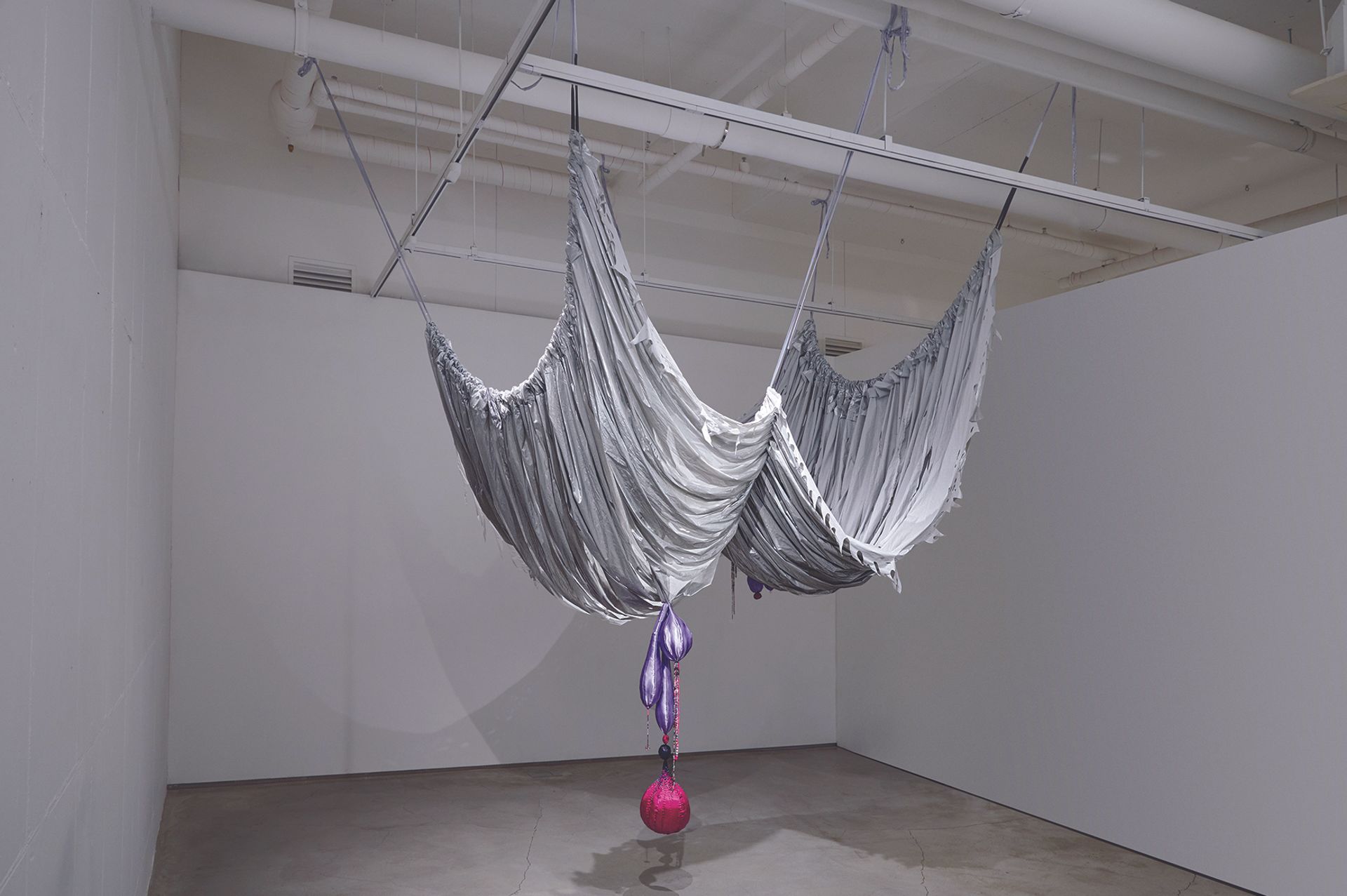 Her piece, titled The Great Ballroom, is suspended from the ceiling of the Coex exhibition centre. The draped fabrics evoke the shape of women’s breasts; the work is part of a series called Milk and Honey, which represents the different stages of a women’s body during breastfeeding.