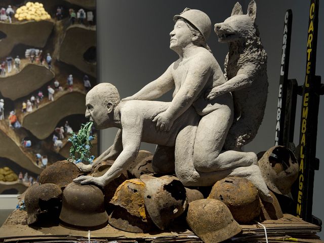 The Museu de l’Art Prohibit also houses Eugenio Merino’s controversial work Forever Franco (2012)—a sculpture of the former Spanish dictator Francisco Franco standing in a fridge—and Ines Doujak’s installation Not Dressed for Conquering -HC04 Transport (2010) which shows a former Spanish king in a sexual act with a dog.