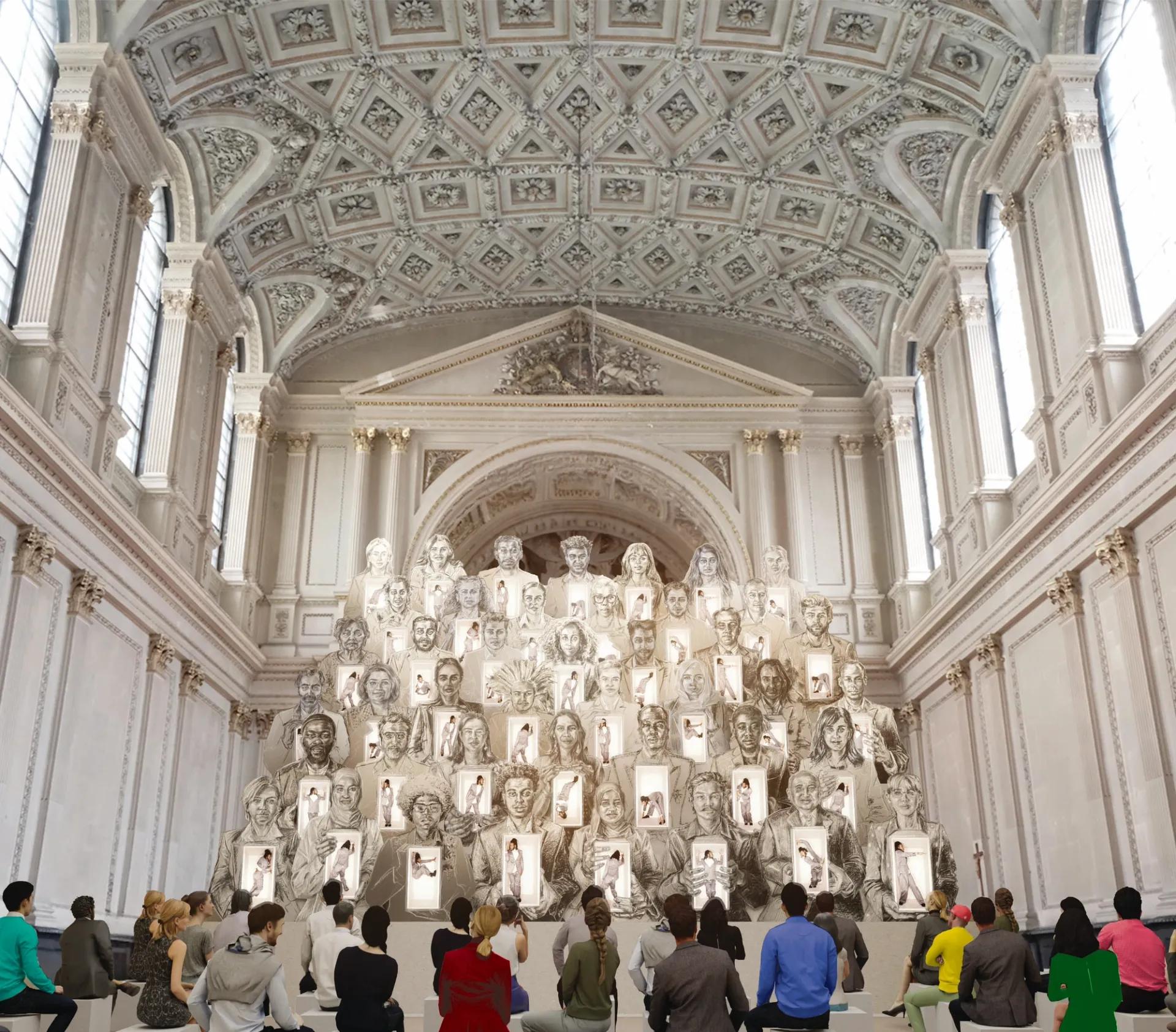 Congregation, which opens against a backdrop of ongoing debates surrounding migration across the UK, explores the plight of refugees. Devlin’s large-scale chalk and charcoal portraits, presented in rows as a “monumental projection-mapped tiered structure”, depict 50 Londoners from 28 countries who have experienced “forced displacement”. More