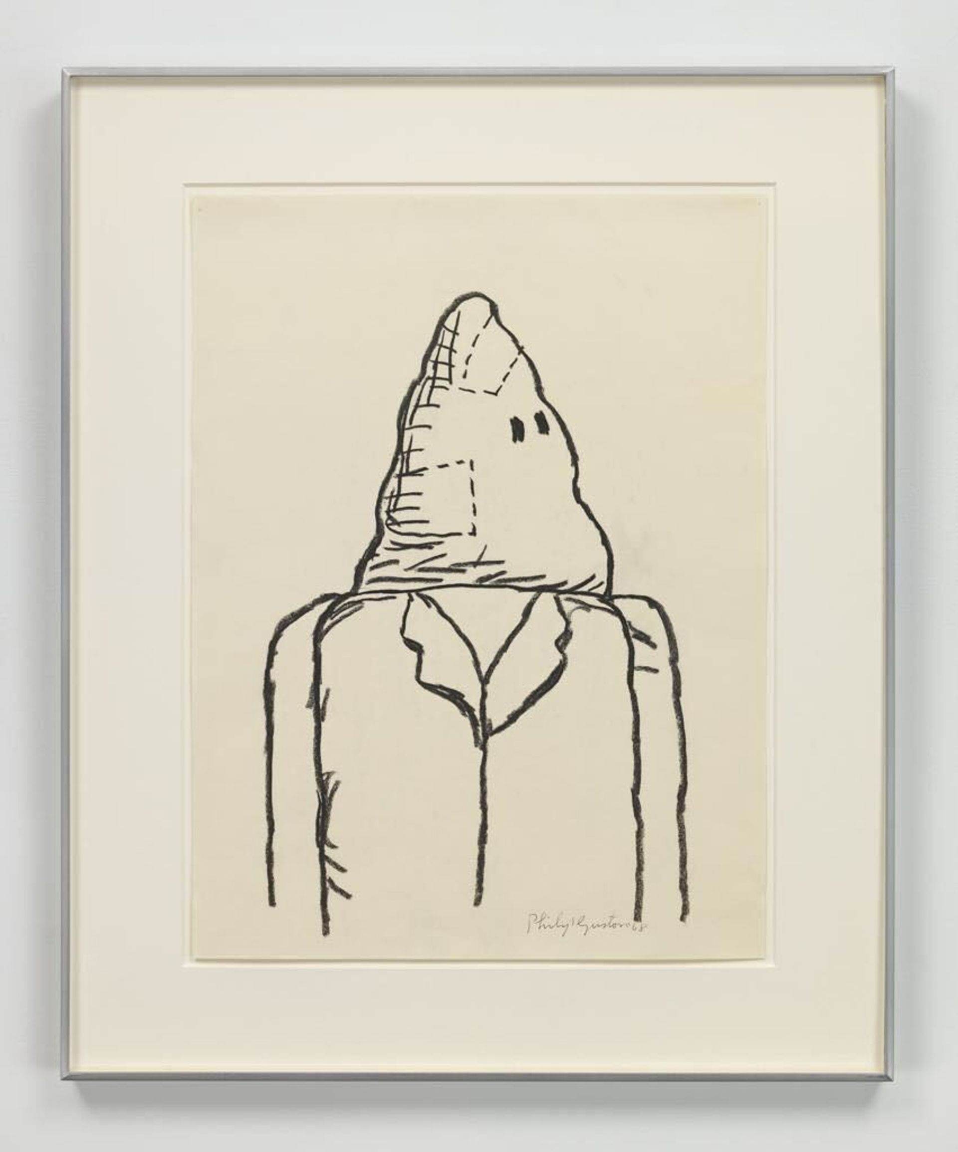 Over at Frieze Masters, Hauser & Wirth is capitalising on the Guston retrospective at Tate Modern, showing four works by the late US artist. They include the figurative canvas, Calm Sea (1977), the sister work to a painting on show at Tate Modern titled Black Sea (also 1977). Pieces on the stand start at around $200,000 for works on paper. Two sold on the opening day: one at $200,000 and another, of a hooded Ku Klux Klan figure, at $600,000.
