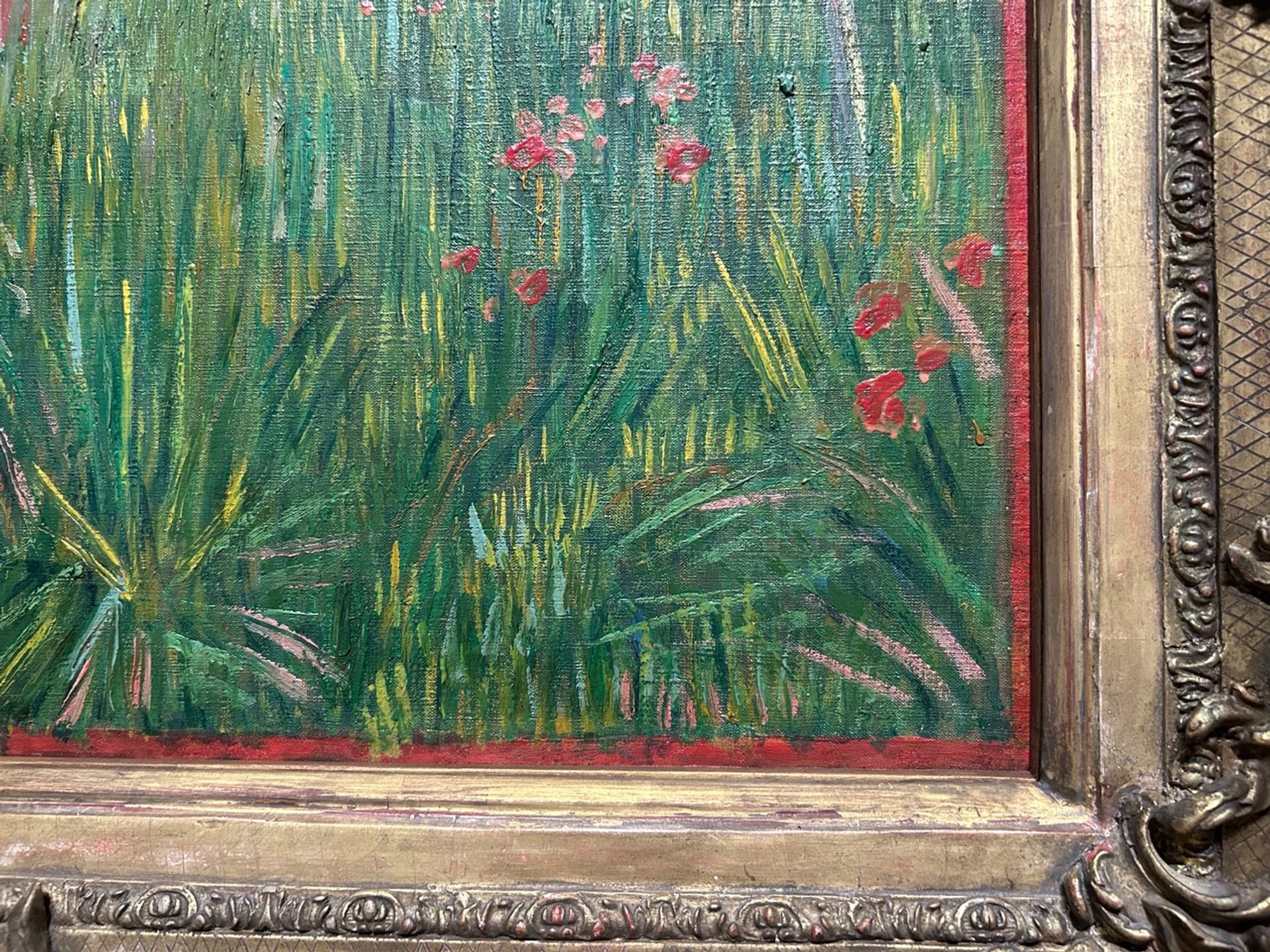 The red border on Van Gogh’s A Woman Walking in a Garden (May-July 1887) (detail)