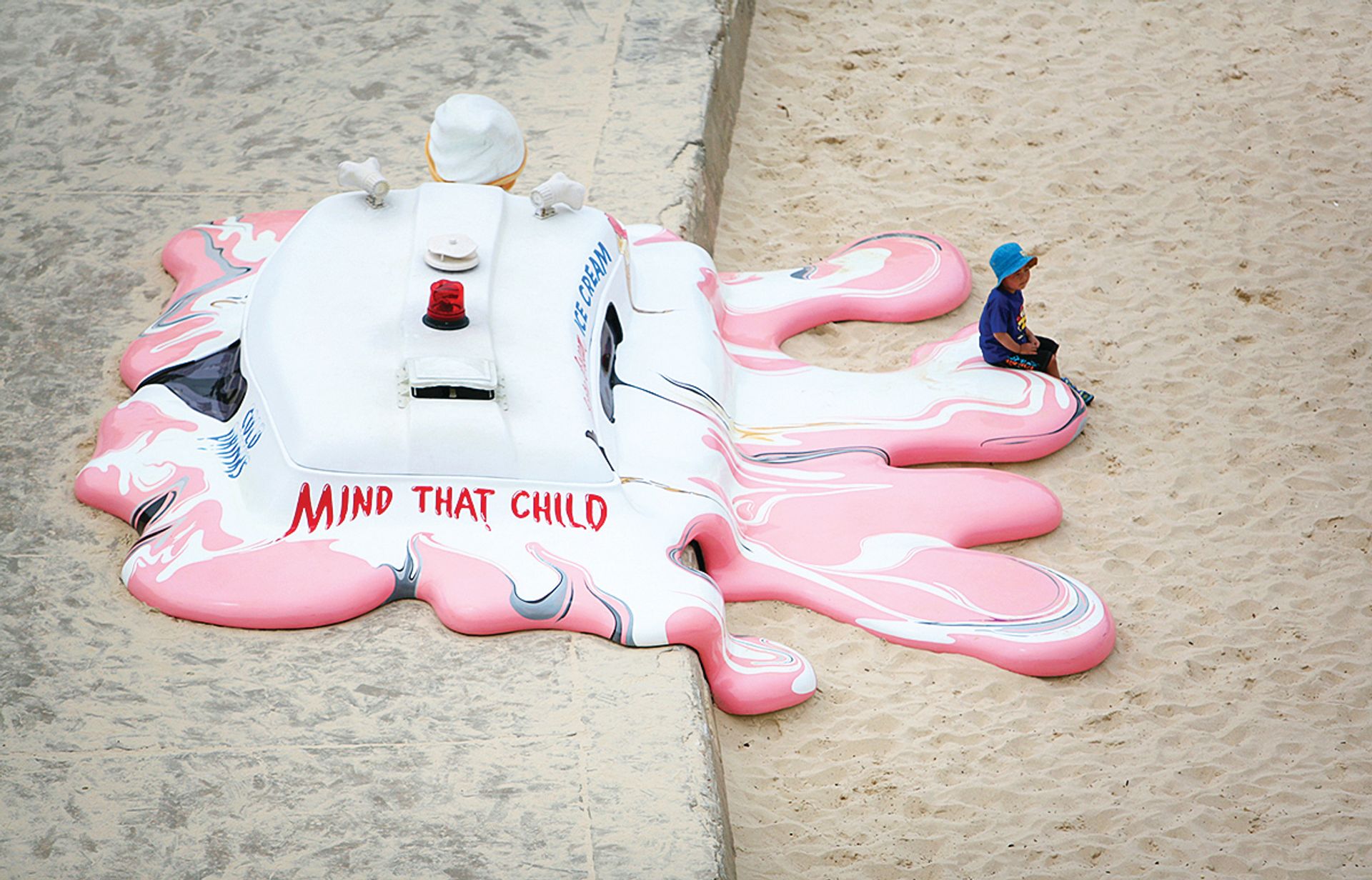 One of Sculpture by the Sea’s most popular creations was inspired by another feature of Australian vernacular life. In 2006, a Sydney-based collective called The Glue Society created a melted ice cream van, which flowed off the pavement and on to Tamarama Beach, the next strip of sand south of Bondi. Called Hot with a Chance of a Late Storm, the work is making a comeback this year after undergoing restoration.