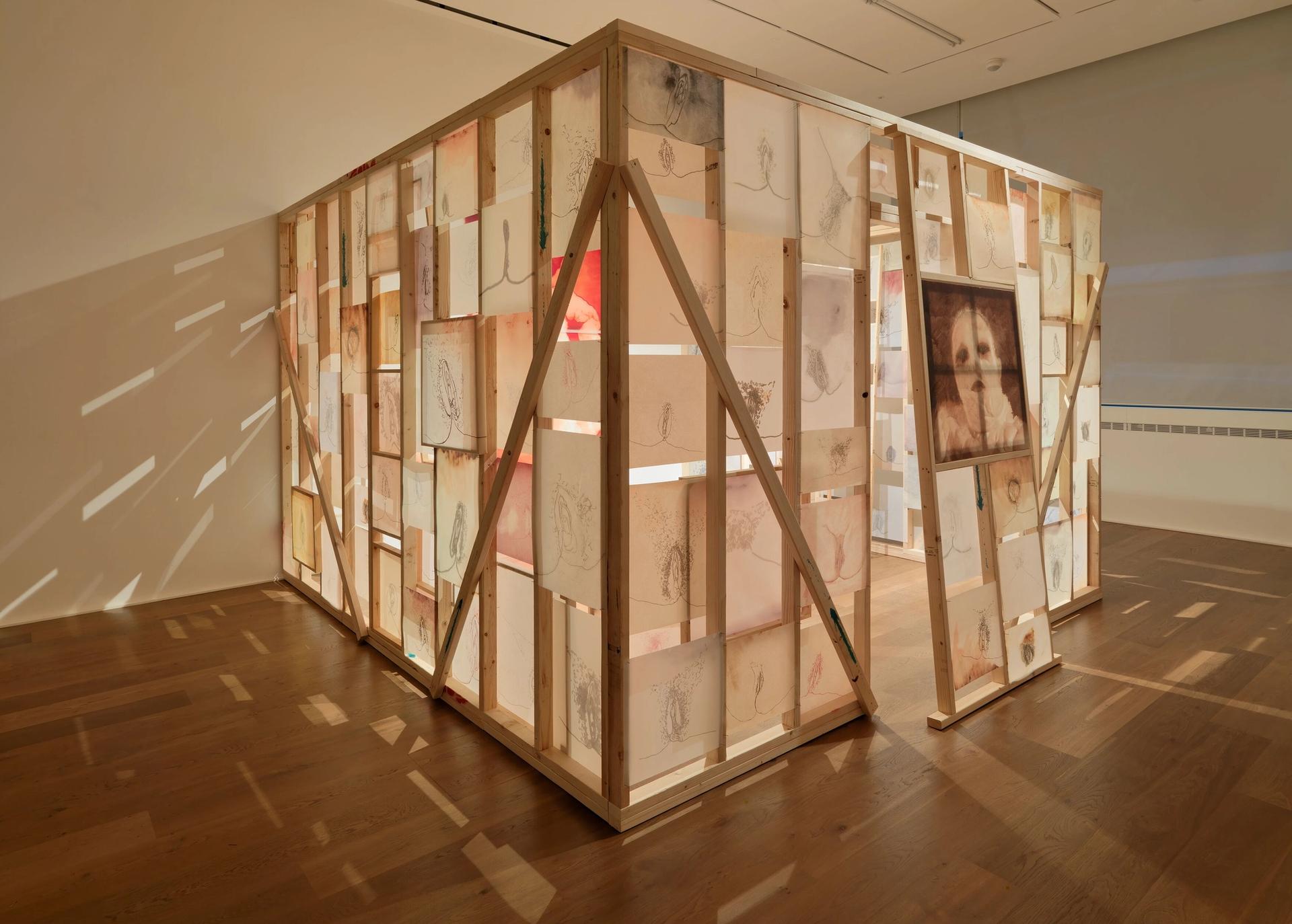 Applebroog has been represented by Hauser & Wirth since 2009 and had a major solo exhibition in the gallery’s Upper East Side space in New York the following year, titled Monalisa. The exhibition featured a room-sized structure plastered with more than 100 drawings based on the aforementioned series of sketches from the late 1960s. Her most recent exhibition was held at Hauser & Wirth’s Somerset space in 2022; titled Ida Applebroog: Right Up To Now 1969–2021, it encompassed several key eras of her career.