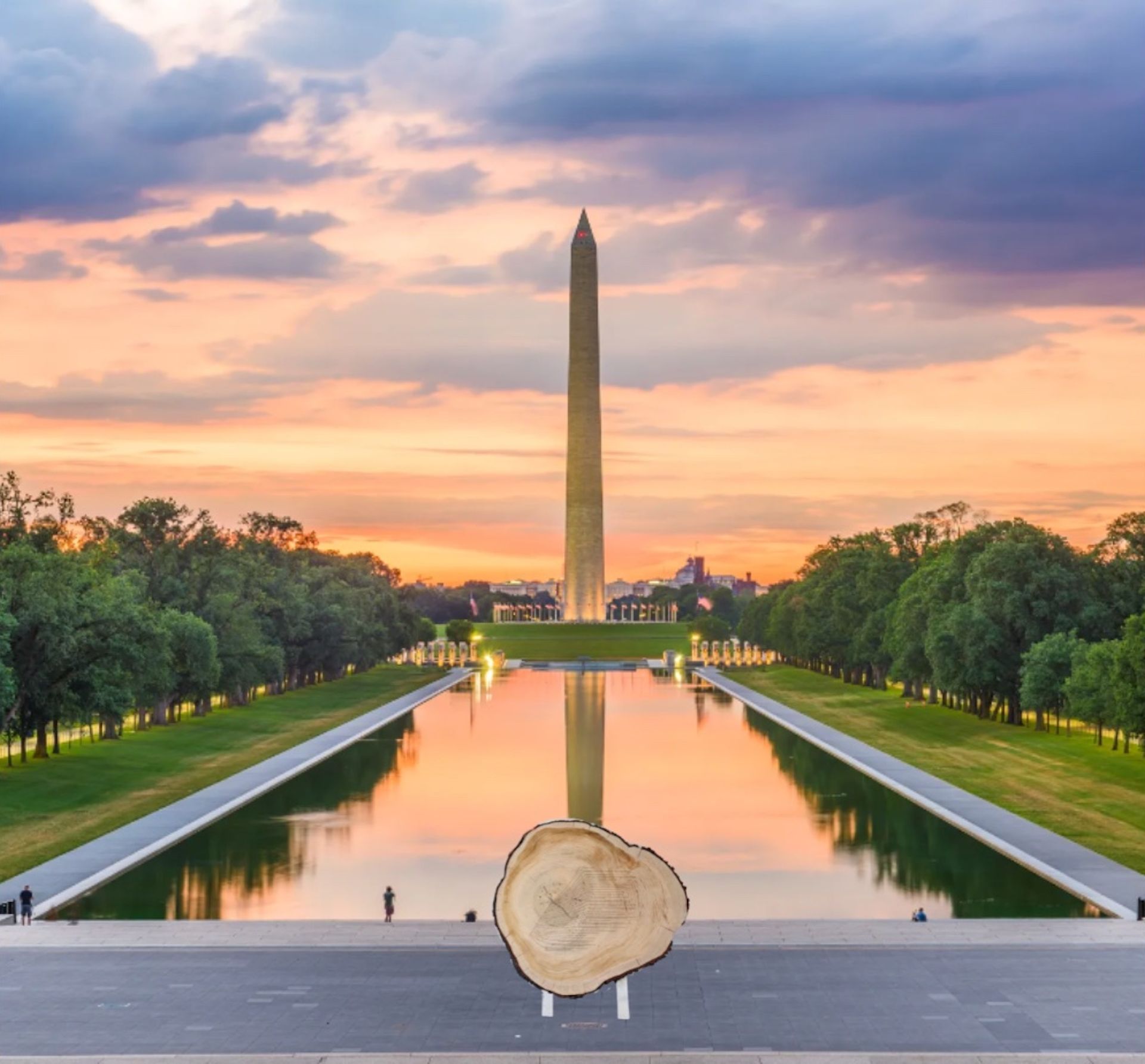 On 1 November, a slice of tree trunk measuring 6ft in diameter and emblazoned with human history from a feminist perspective will be installed at the edge of the National Mall’s Reflecting Pool in Washington, DC. A timeline of 30 wood-burned milestones from the past 50,000 years punctuates the 250-year-old deodar cedar’s rings, from early goddess worship through today. The sculpture’s title, Dendrofemonology (2022), references dendrochronology, a method of using tree rings to mark time.