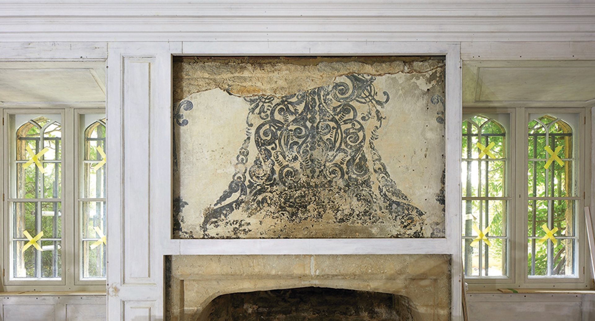 One of the many surprises was the rediscovery of the wall paintings. The best survivor, originally executed in expensive pigments including orpiment, an elegant flower tracery over a fine stone fireplace, is now on display again after centuries. The work on the “17th-century feature wall” in the words of Debbie Russell of Cliveden Conservation, involved stabilising, cleaning and delicately touching in paint losses. It was, she says, “a terrifying job—every centimetre of the paint was lifting and flaking. The work on just that one single painting took months”.