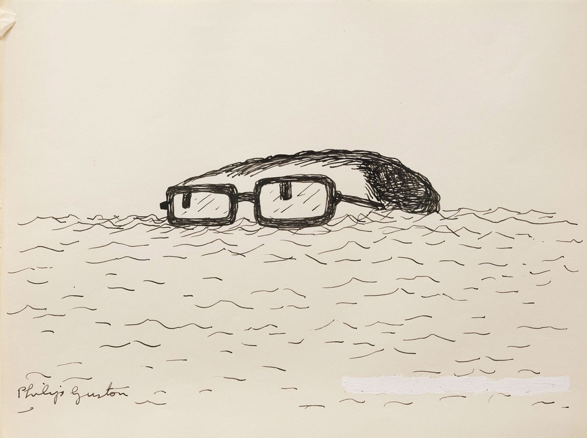 Henry Kissinger (was satirised by Philip Guston in a series of drawings—including Untitled, 1971—in which the then US national security adviser is represented by a disembodied pair of his trademark thick-rimmed spectacles © The Estate of Philip Guston; Courtesy the Estate and Hauser & Wirth