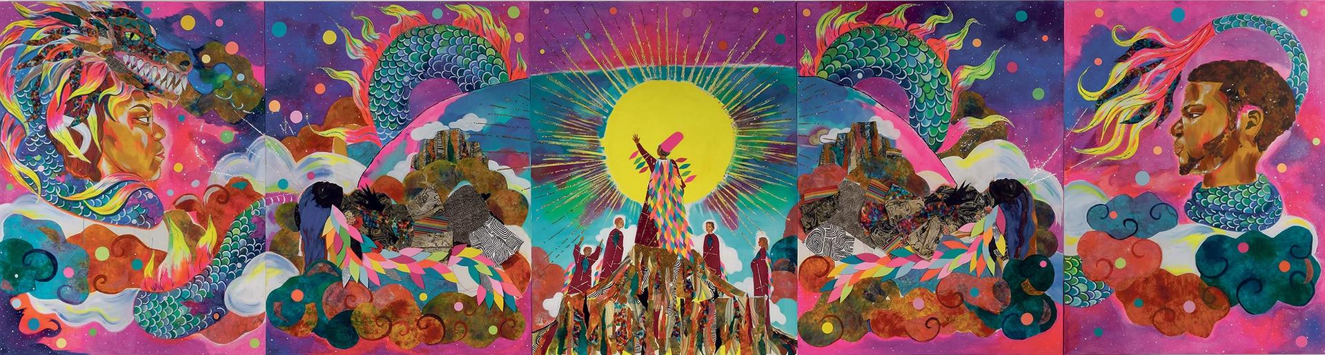 Richmond-Edwards’s paintings, collages and videos transport viewers to a galaxy far, far away from the confines of white supremacy. Her universe grounds Black mythologies and hopeful, alternative environments in self-portraiture and figural composition, reaching across media to form a bridge between past and present. The show includes a new two-channel video work that braids her experiences with marching band and majorette culture at historically Black colleges and universities (HBCUs) with a musical score by her 19-year-old son, an emerging jazz musician in their home state of Maryland. The Art Newspaper caught up with the artist to discuss the space-time continuum and the liberatory modality of imagination.