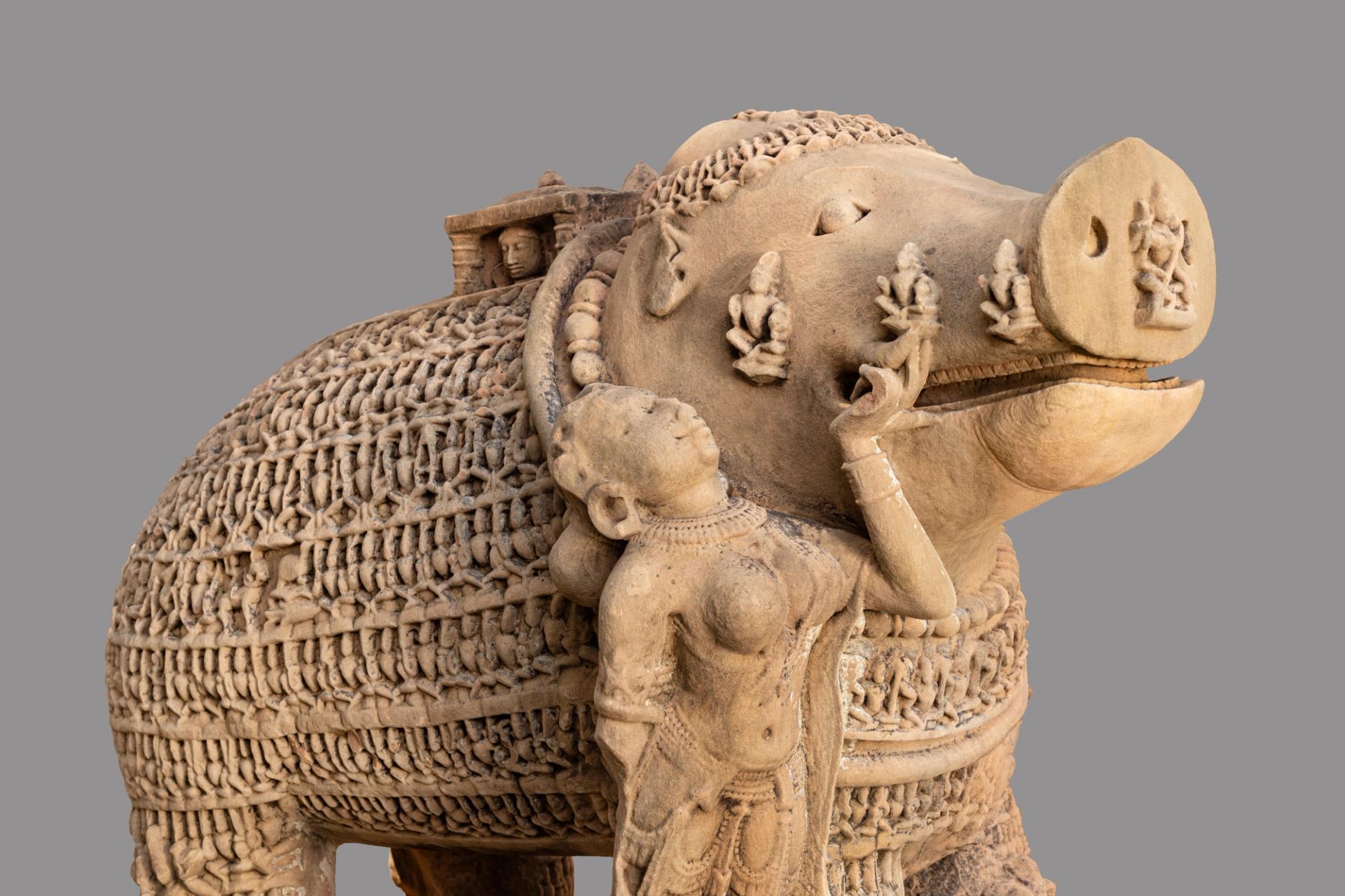 Yajna Varaha: Boar Incarnation of Vishnu, Sunaari village, Vidisha, Madhya Pradesh, India; 900–1099 CE. Vidisha District Archaeological Museum, State Department of Archaeology Archives and Museums, Government of Madhya Pradesh, India. Image: Vidisha District Archaeological Museum, State Department of Archaeology Archives and Museums, Government of Madhya Pradesh, India (1919)