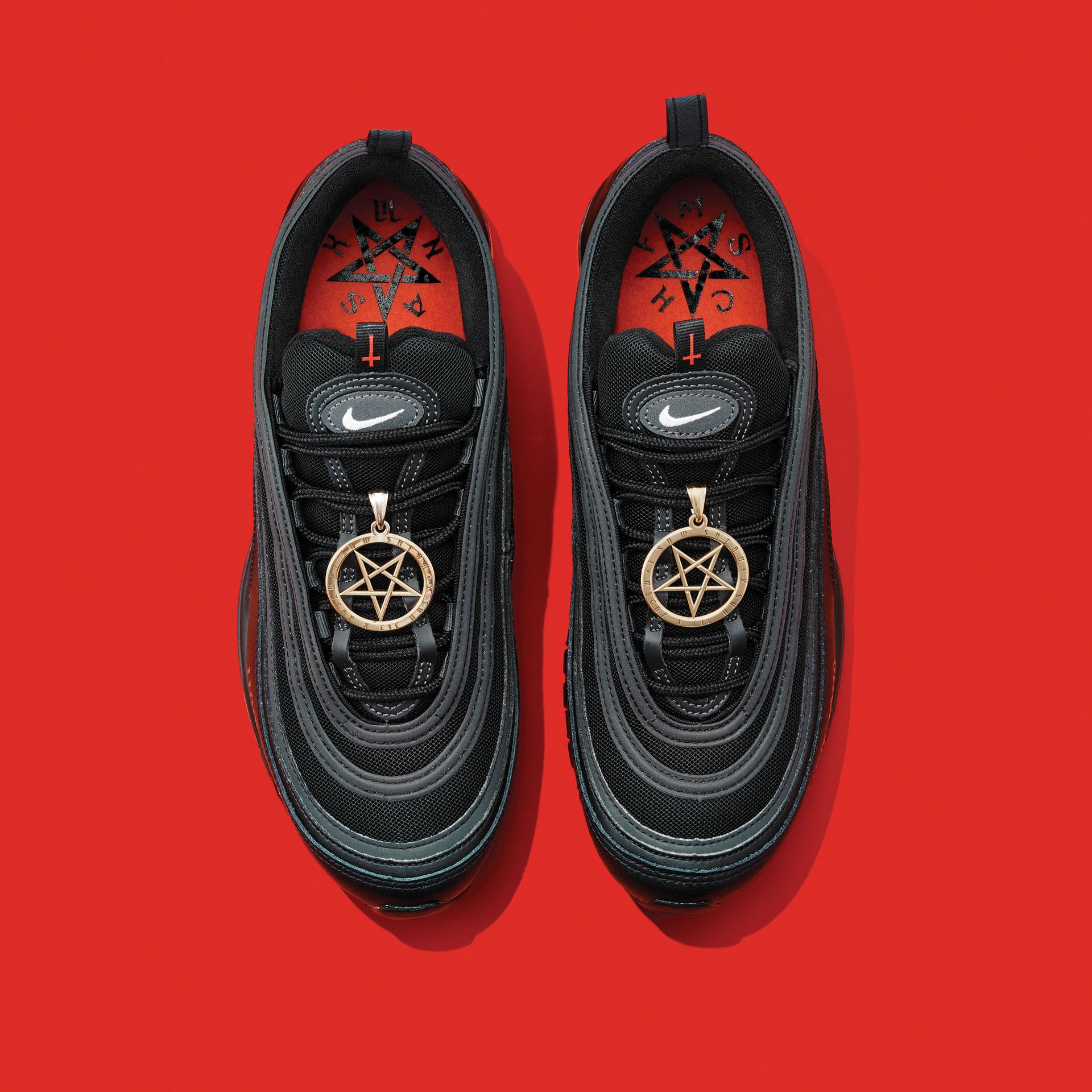 Among the most recent works are the Satan Shoes (2021) by MSCHF with Lil Nas X, which also employ taboo aspects of blood in their design. As well as a shoebox featuring Medieval art, a drop of blood with red ink was encased in the heel air bubbles of the shoes.