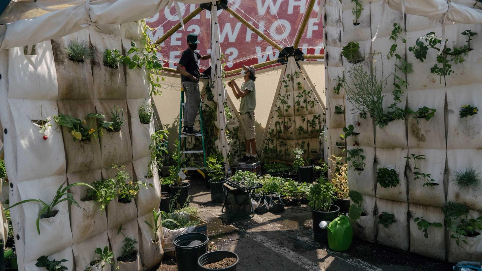Crenshaw Dairy Mart has created geodesic domes filled with food plants from local Black gardeners