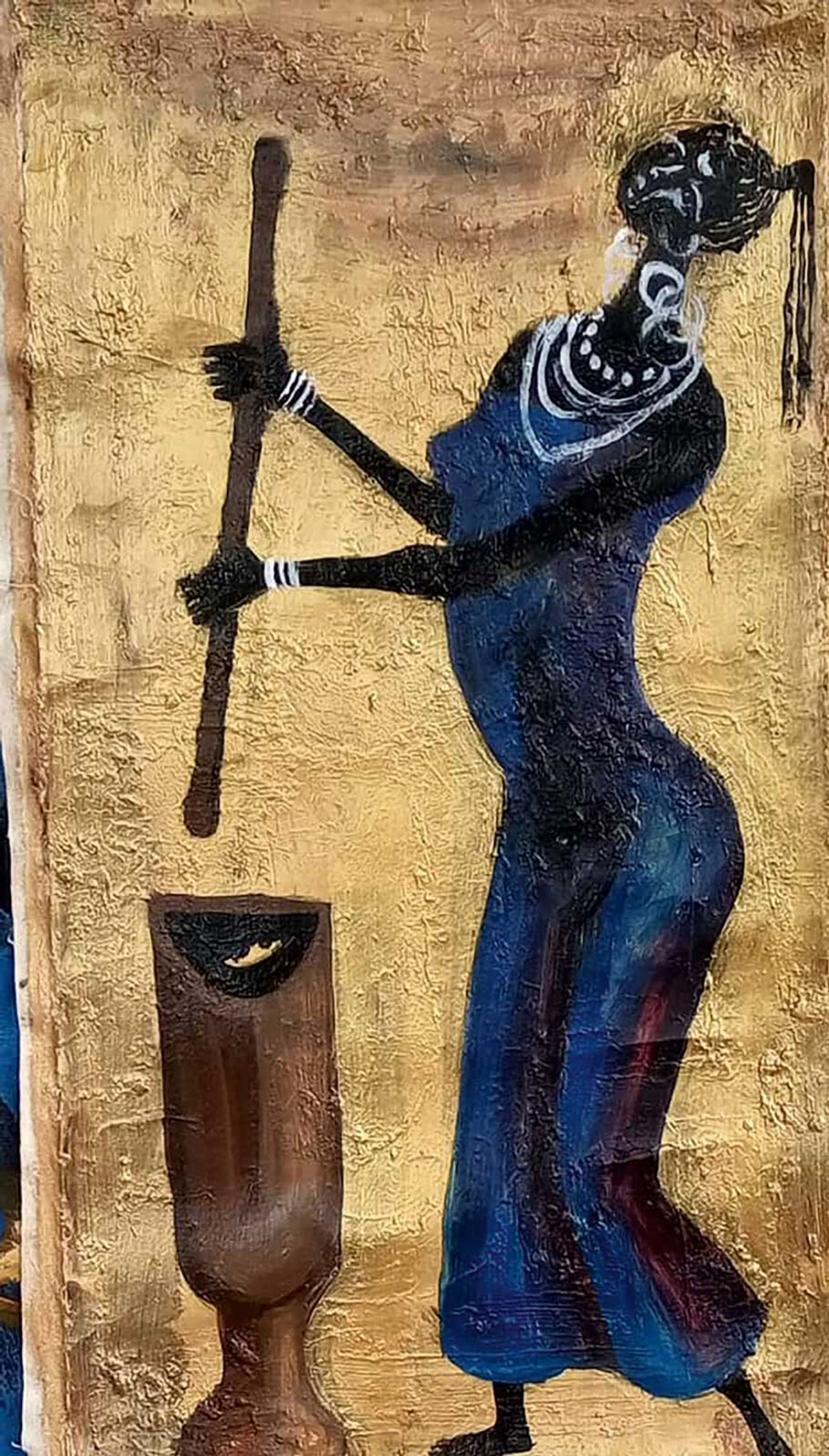 Samuel Kakaire, Grain Pounding at the Mortar (1995), Afriart Gallery