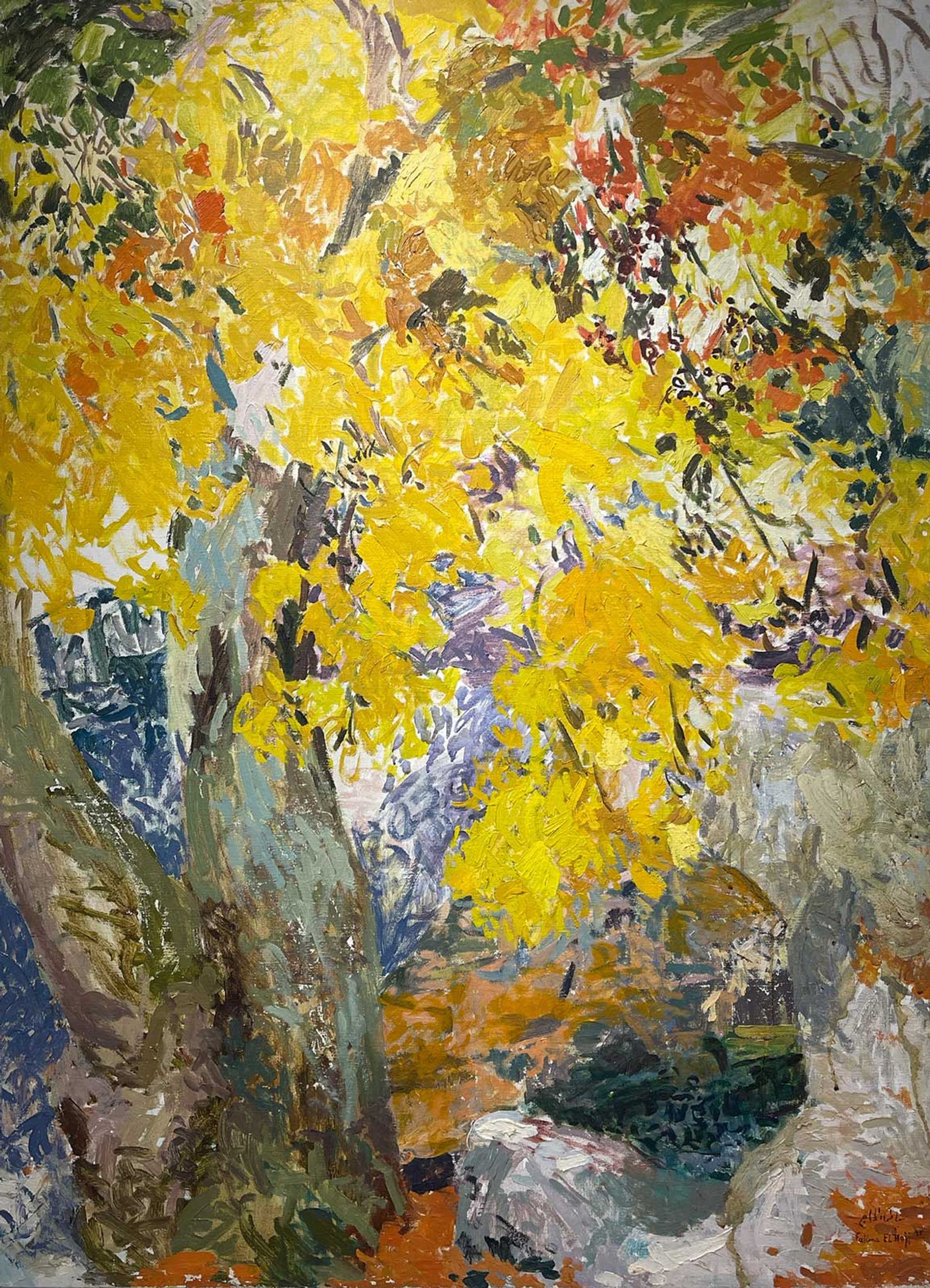 Like speckles of sunlight, Fatima El Hajj’s dynamic brushstrokes and vibrant palette enliven her subject matter; here a floral still life.