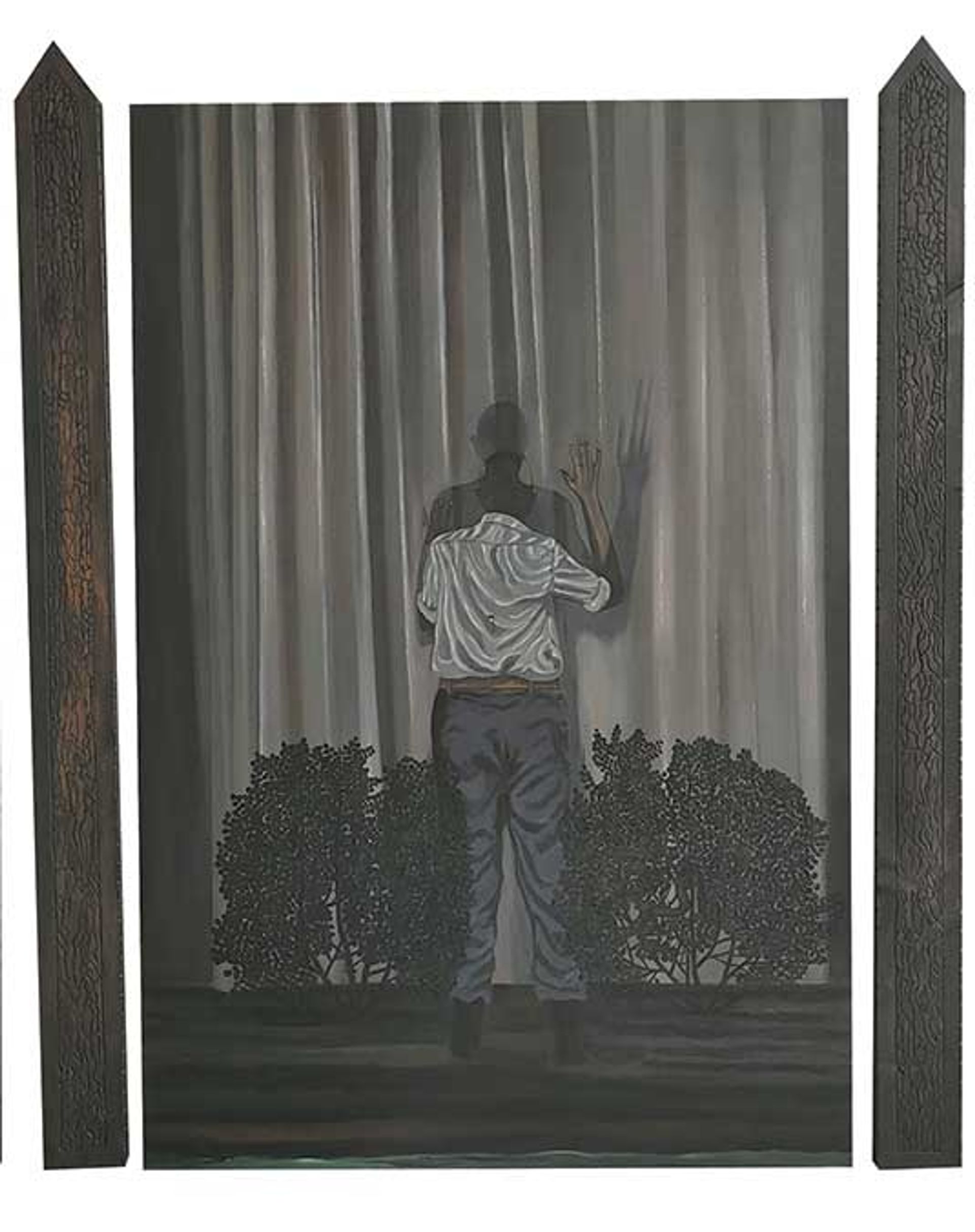 Encounter (Triptych) (2023) by Abul Hisham, who is showing in the Bawwaba section of Art Dubai
