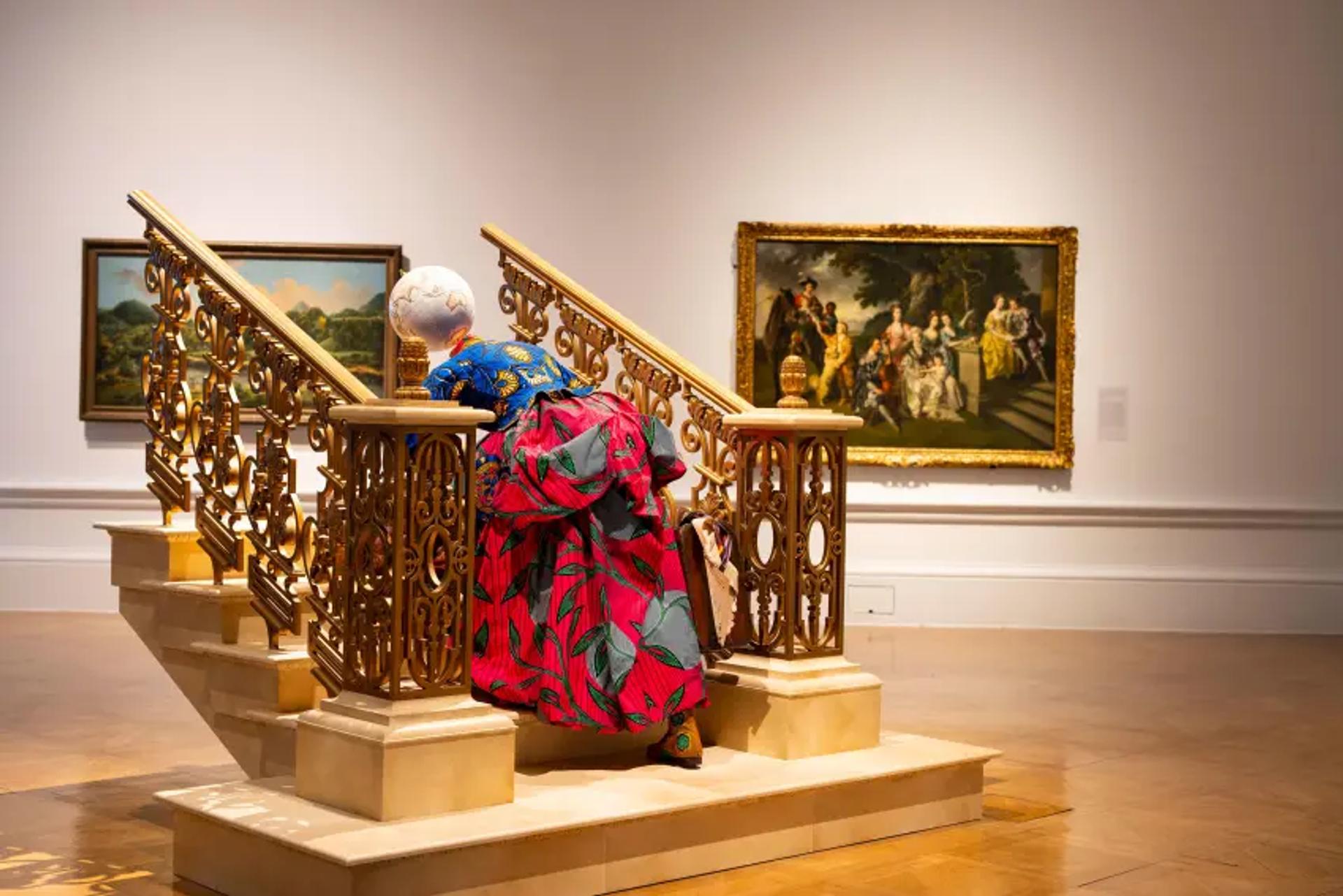 Installation view showing Yinka Shonibare's Woman Moving Up (2023) Image: Courtesy the artist and James Cohan Gallery, New York. Photo © Royal Academy of Arts, London / David Parry. © Yinka Shonibare CBE RA